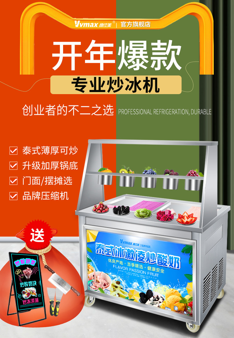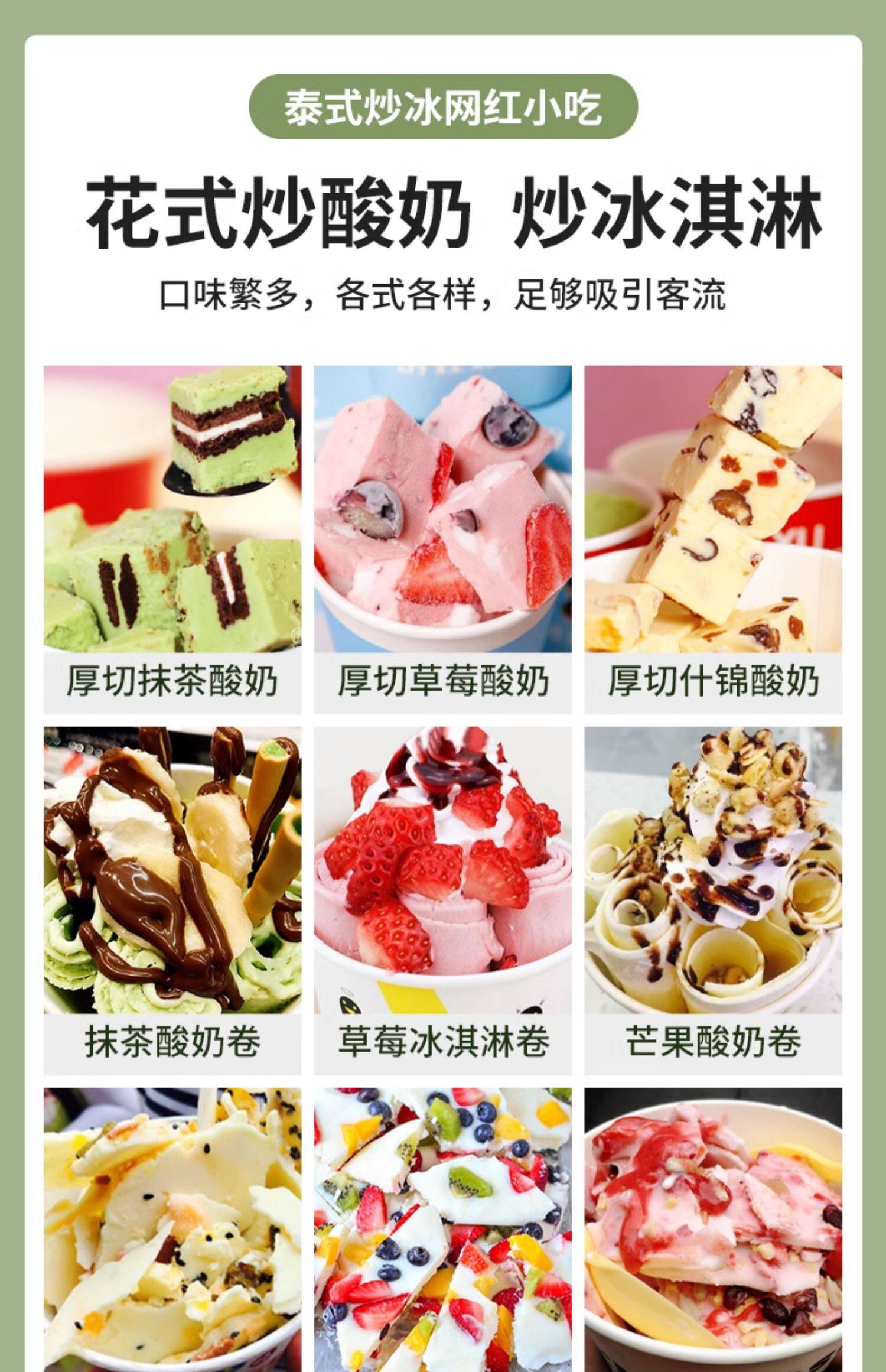 제조업체의 도로변 두껍게 자른 요거트 기계, 상업용 아이스 크레이프 기계, 스노우 아이스크림, 과일 아이스크림 롤 스무디 기계스토어 가기