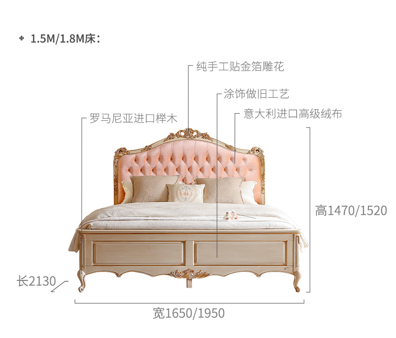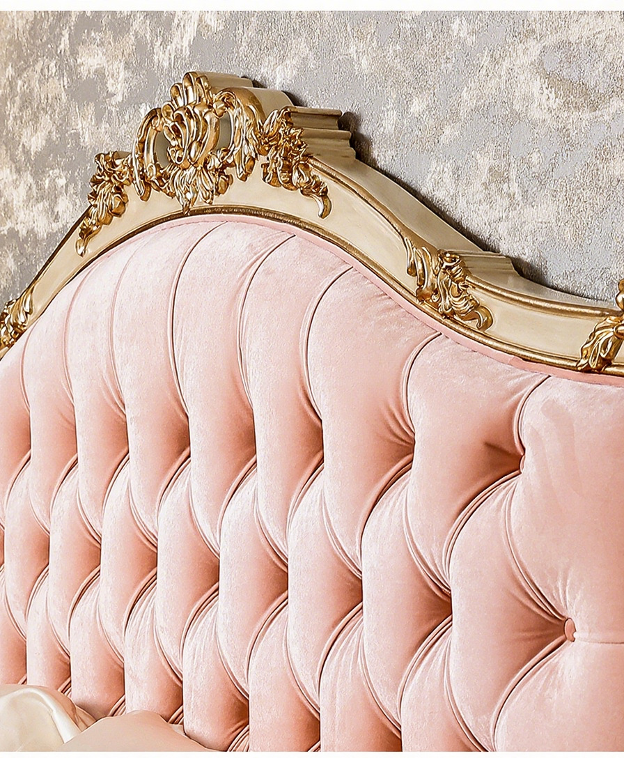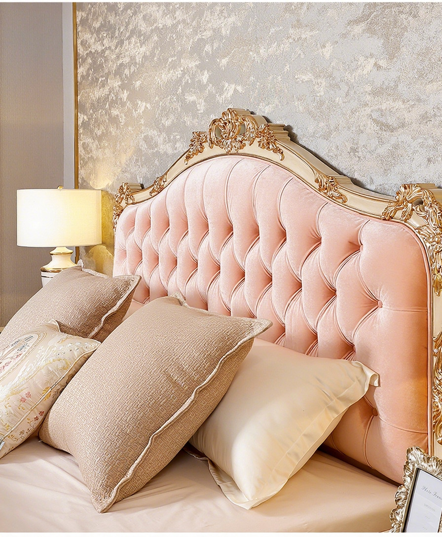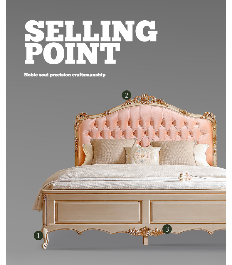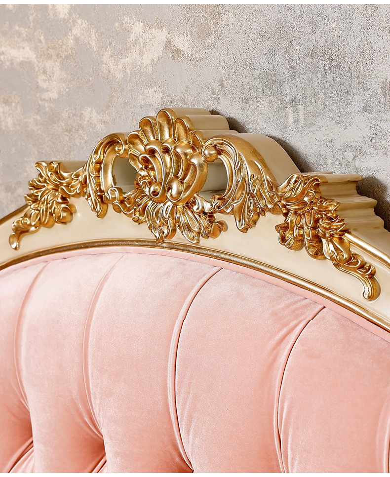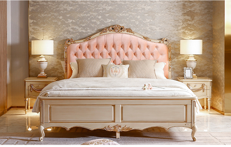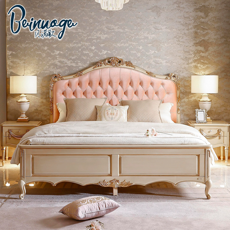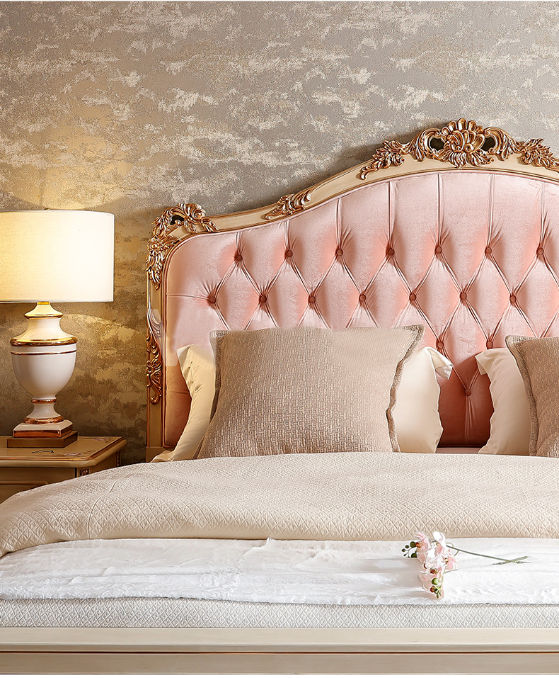 Benoguo Palace 복고풍 작은 프랑스 패브릭 침대 빌라 유럽 스타일 침실 단단한 나무 공주 침대 신혼 핑크 대형 침대