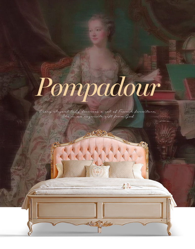 Benoguo Palace 복고풍 작은 프랑스 패브릭 침대 빌라 유럽 스타일 침실 단단한 나무 공주 침대 신혼 핑크 대형 침대스토어 가기