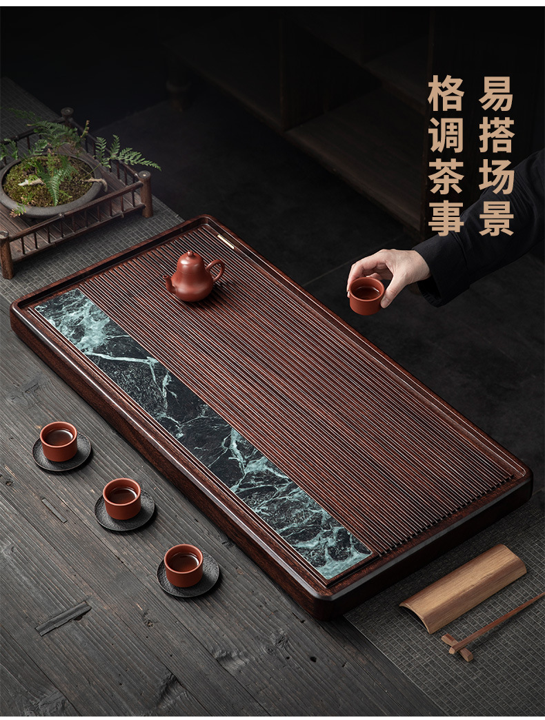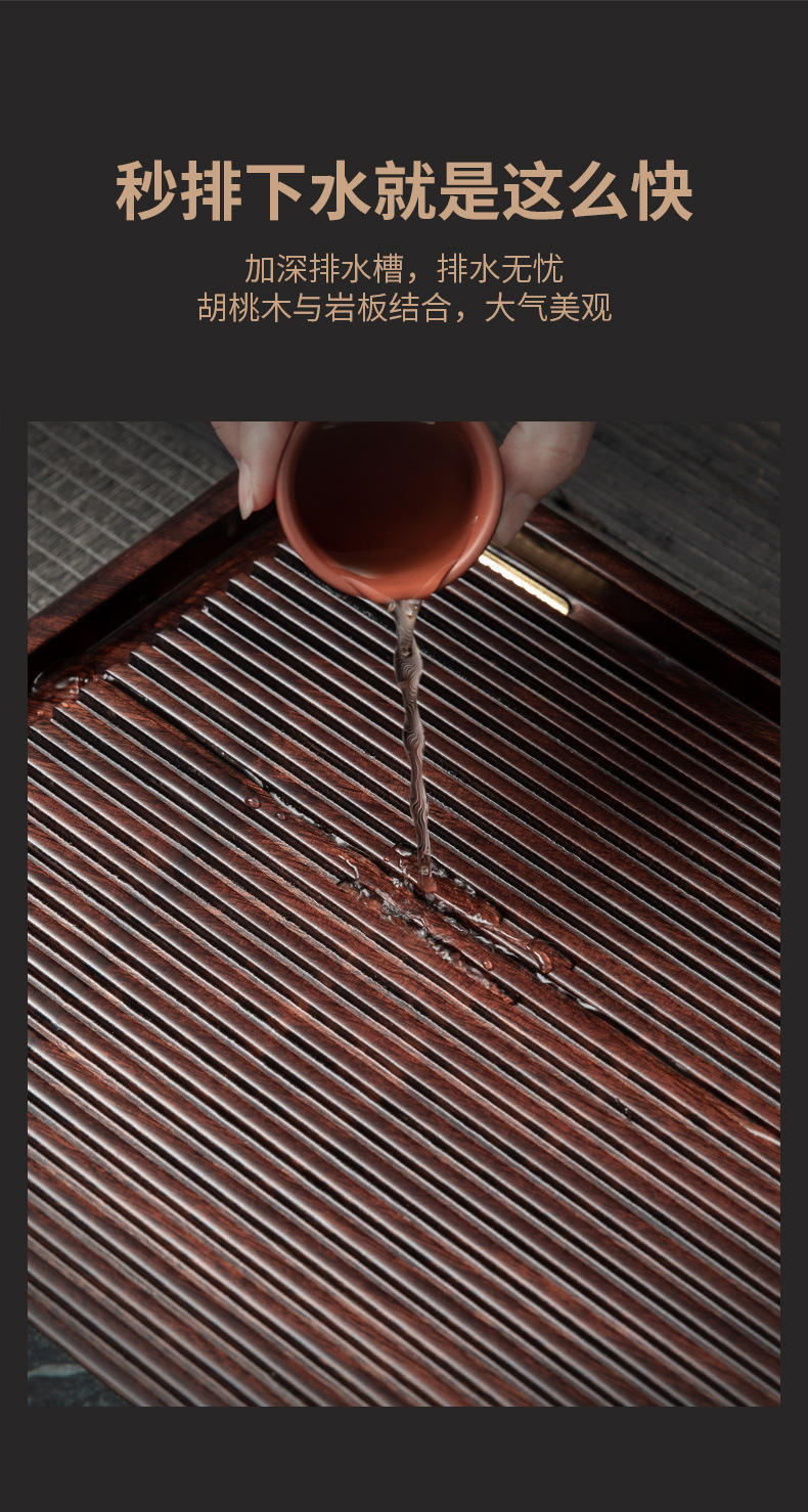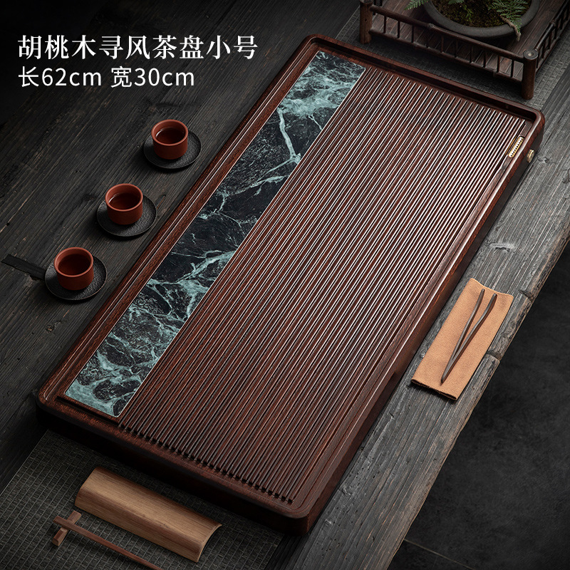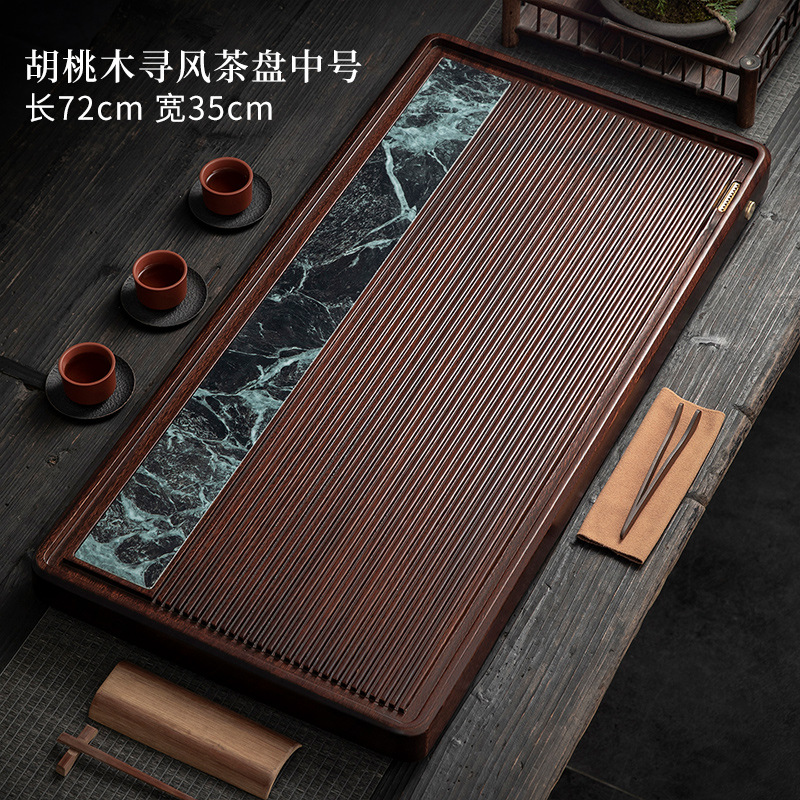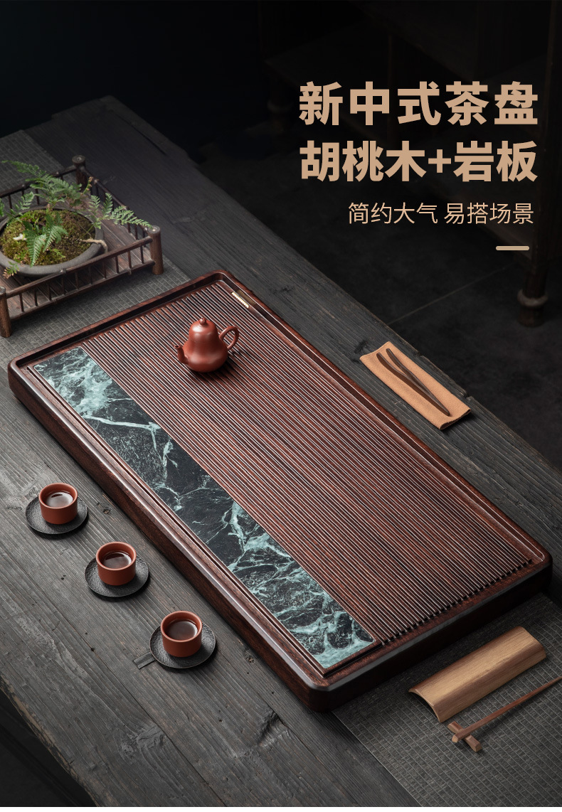 2025 새로운 호두 단단한 나무 슬레이트 차 트레이 홈 오피스 쿵푸 차 세트 차 테이블 작은 차 트레이