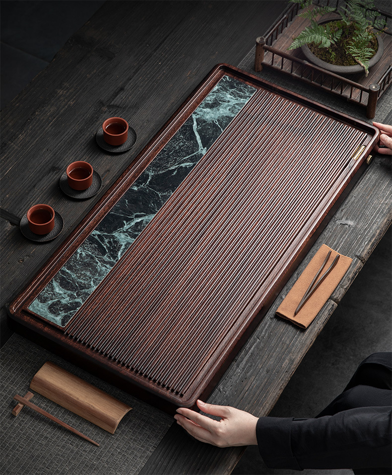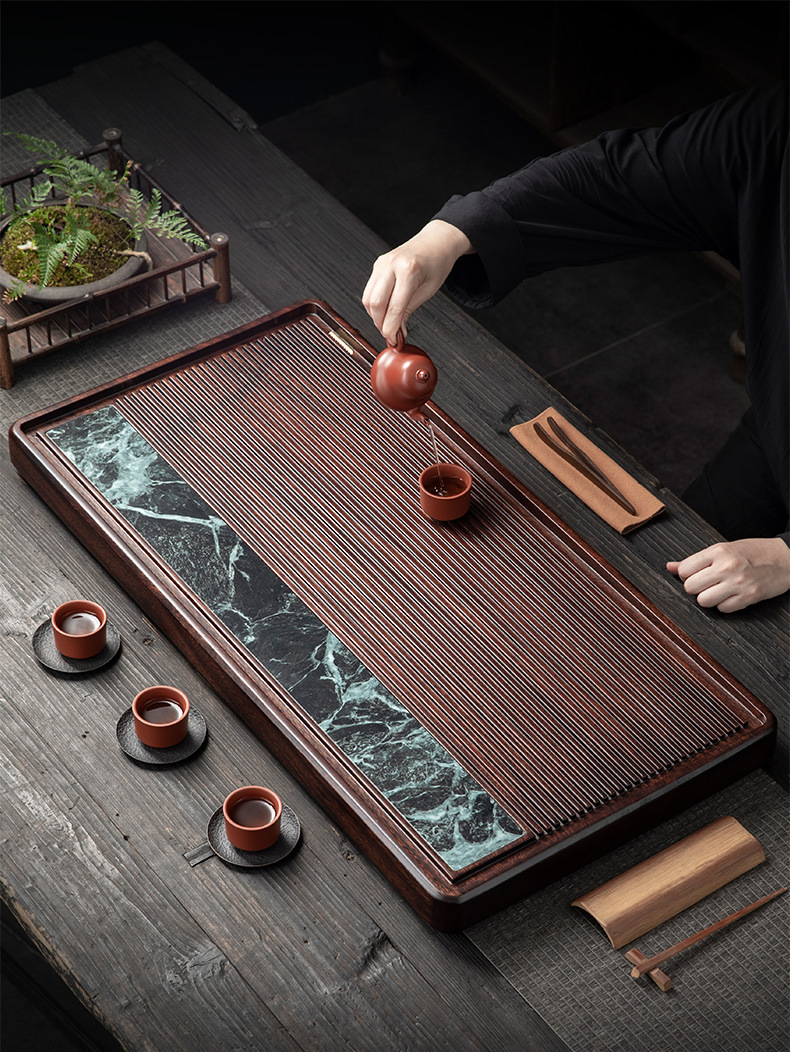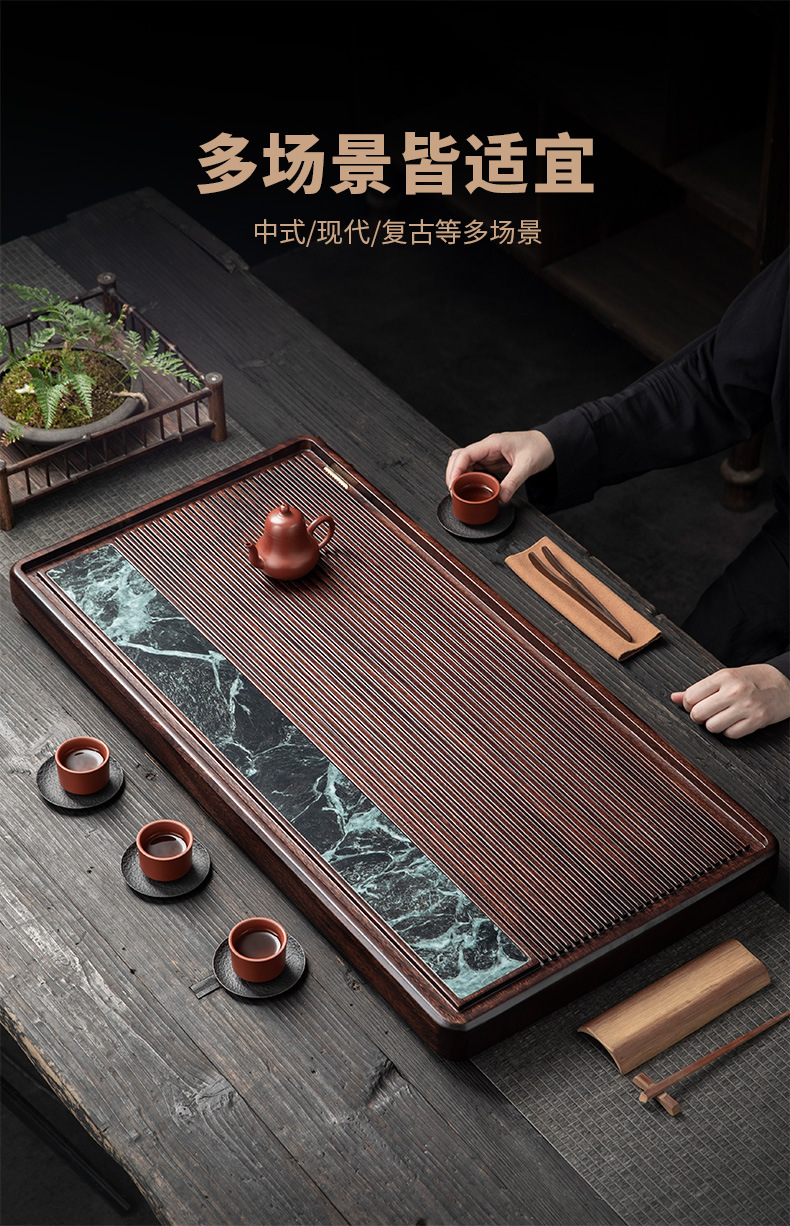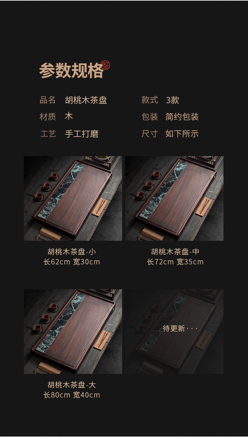 2025 새로운 호두 단단한 나무 슬레이트 차 트레이 홈 오피스 쿵푸 차 세트 차 테이블 작은 차 트레이