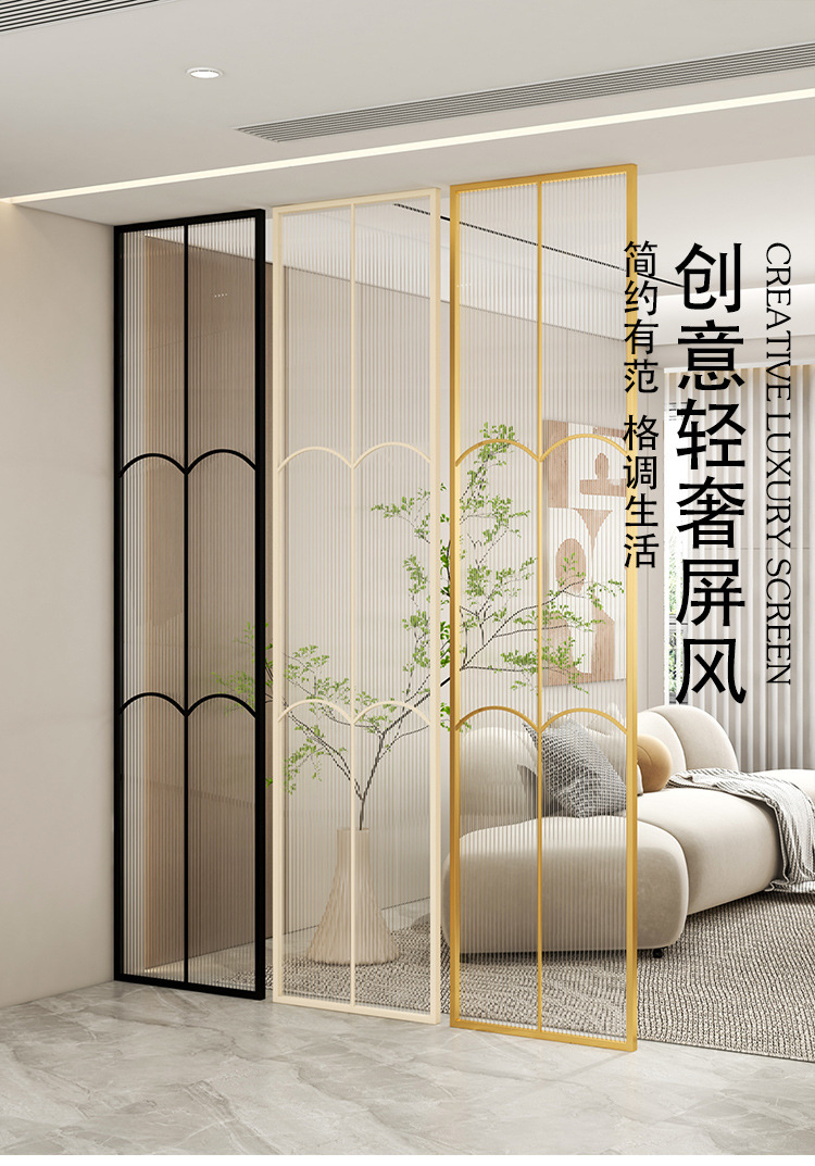 새로운 프랑스 크림 스타일 입구 유리 스크린 거실 입구 파티션 장식 철 가벼운 럭셔리 차단 벽