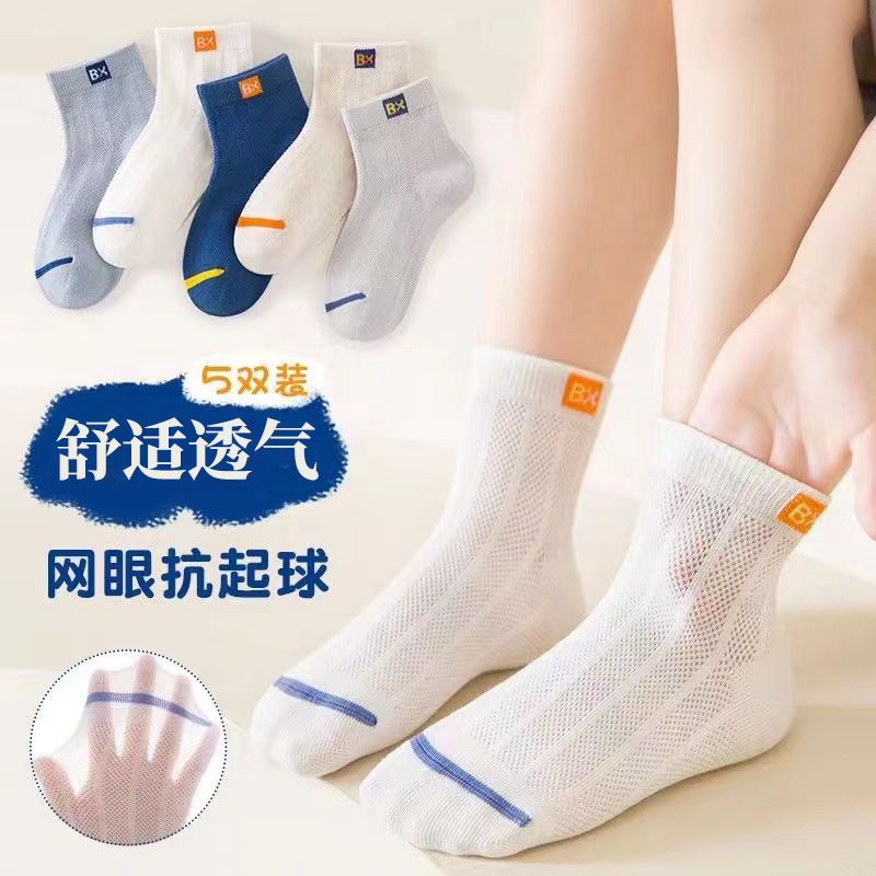 어린이 양말 여름용 얇은 남아용 단색 메쉬 청소년 스포츠 냄새방지 중대형 아동용 남아용 여름용 중목 양말스토어 가기
