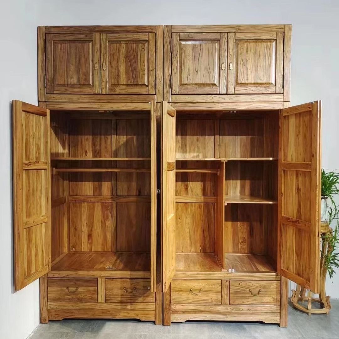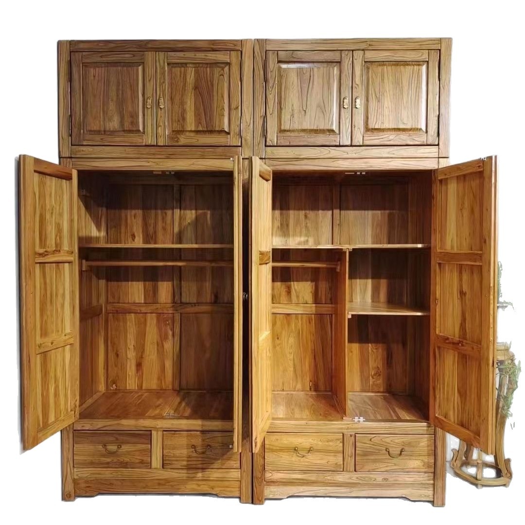 오래된 느릅나무 단단한 나무 상단 캐비닛 서랍이 있는 양문 옷장 옷장 중국식 사물함 침실 보관 및 정리 캐비닛
