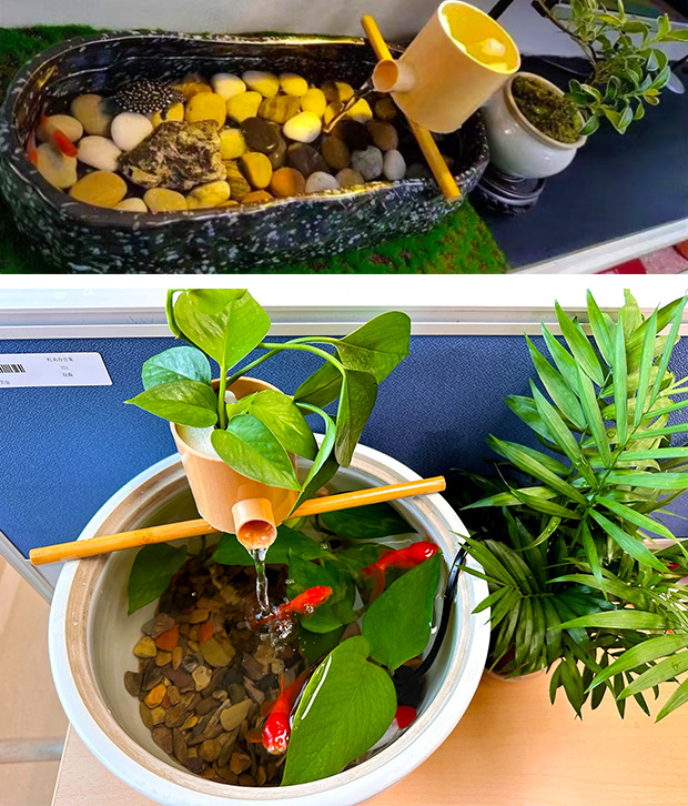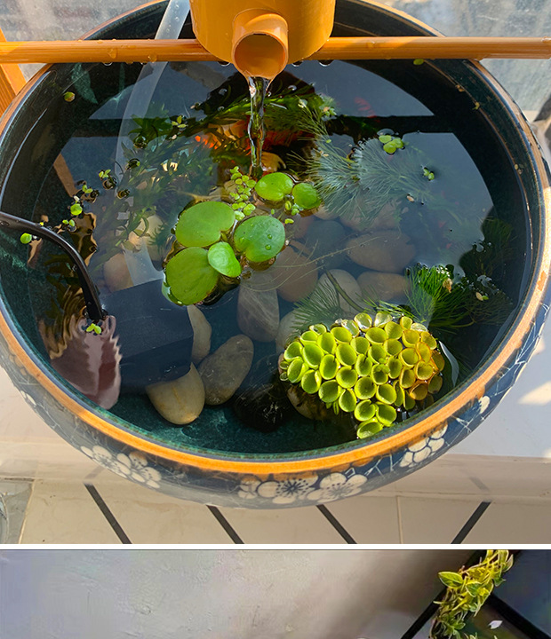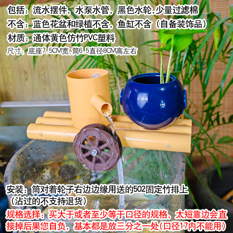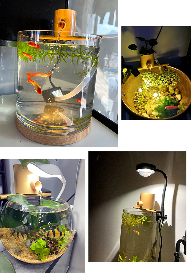 둥근 유리 수조, 폭포 필터, 조경 순환수, 고대 방식의 물고기 양식 및 산소 공급, 3-in-1 물 장식품