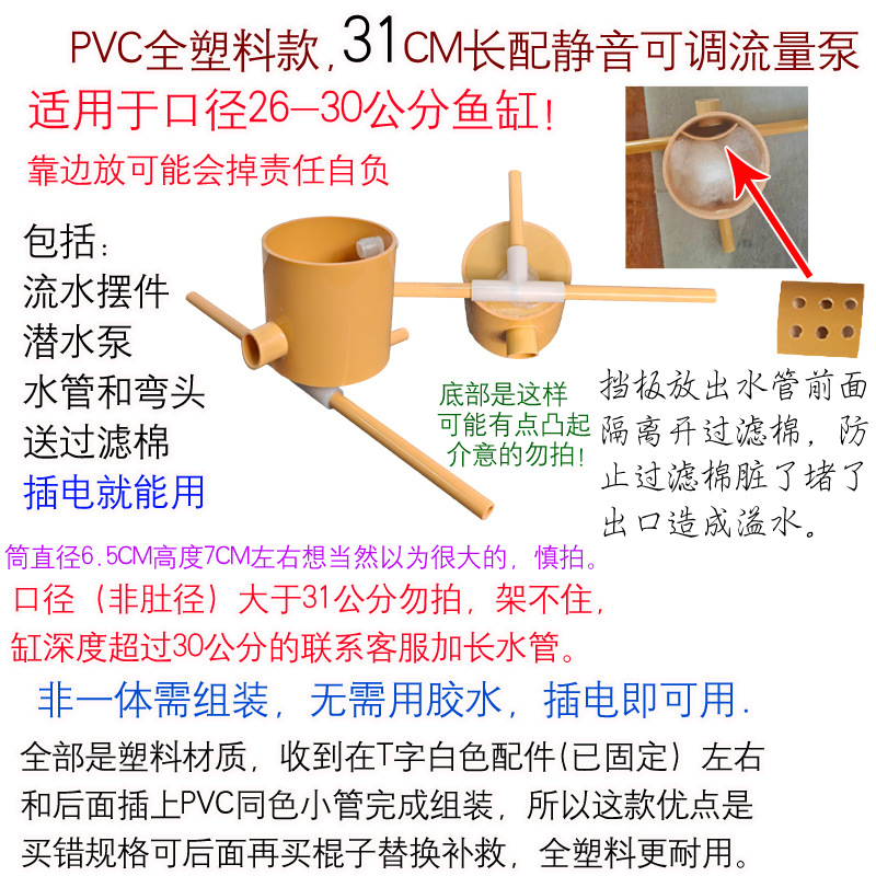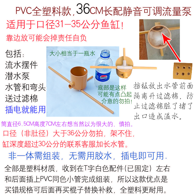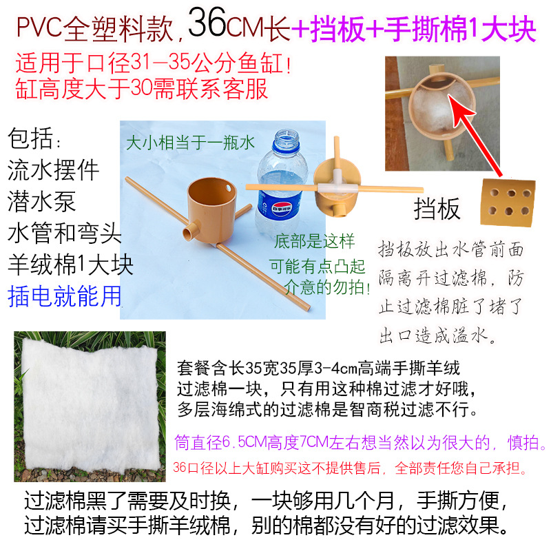 • 튜브 크기 6.5PVC 조립 모델 길이 36cm 펌프 및 파이프 + 배플 포함