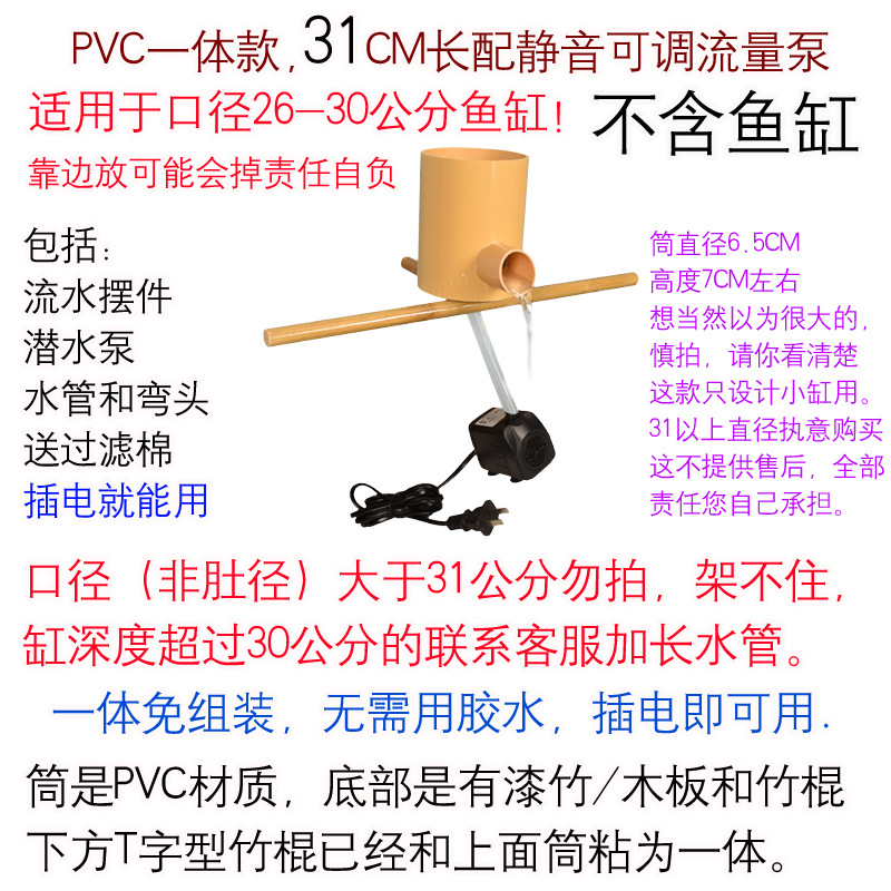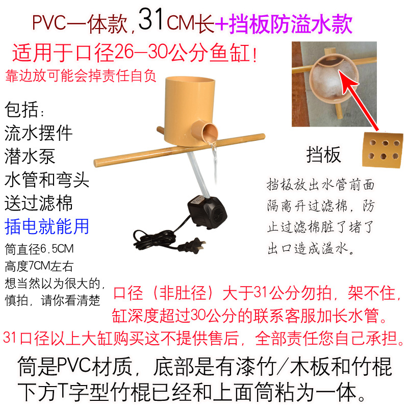 • PVC 일체형 모델, 길이 31cm, 펌프 및 파이프 + 오버플로 방지 배플 포함