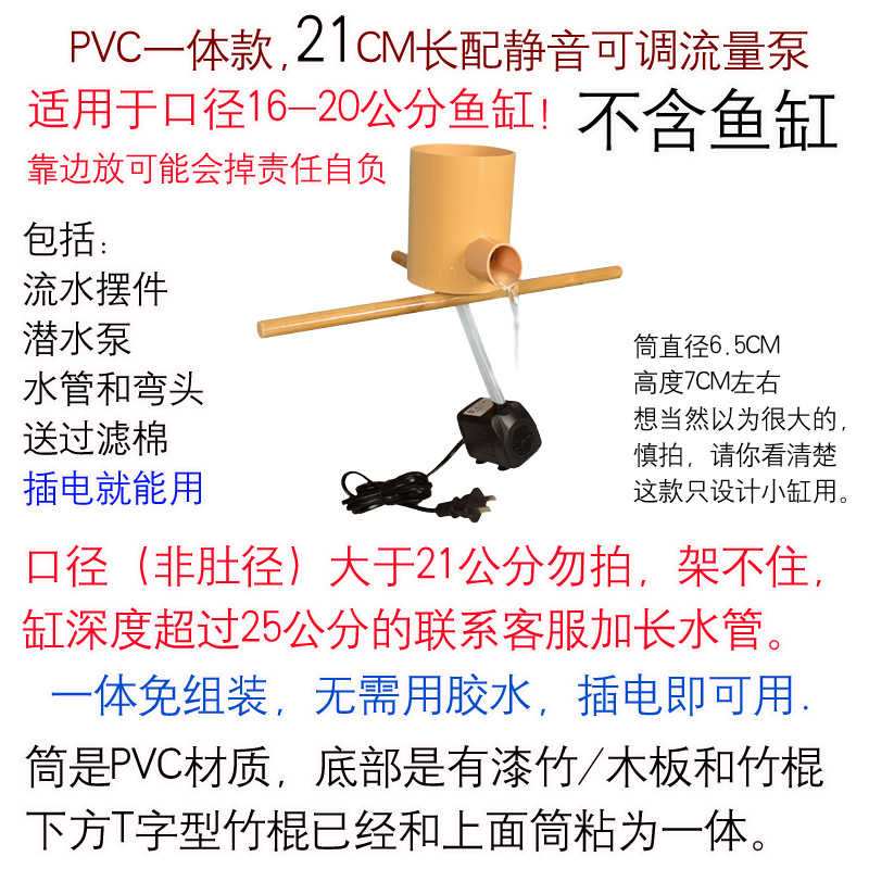 • 펌프와 튜브 + 오버플로 방지 배플을 포함한 길이 21cm의 PVC 일체형 모델
