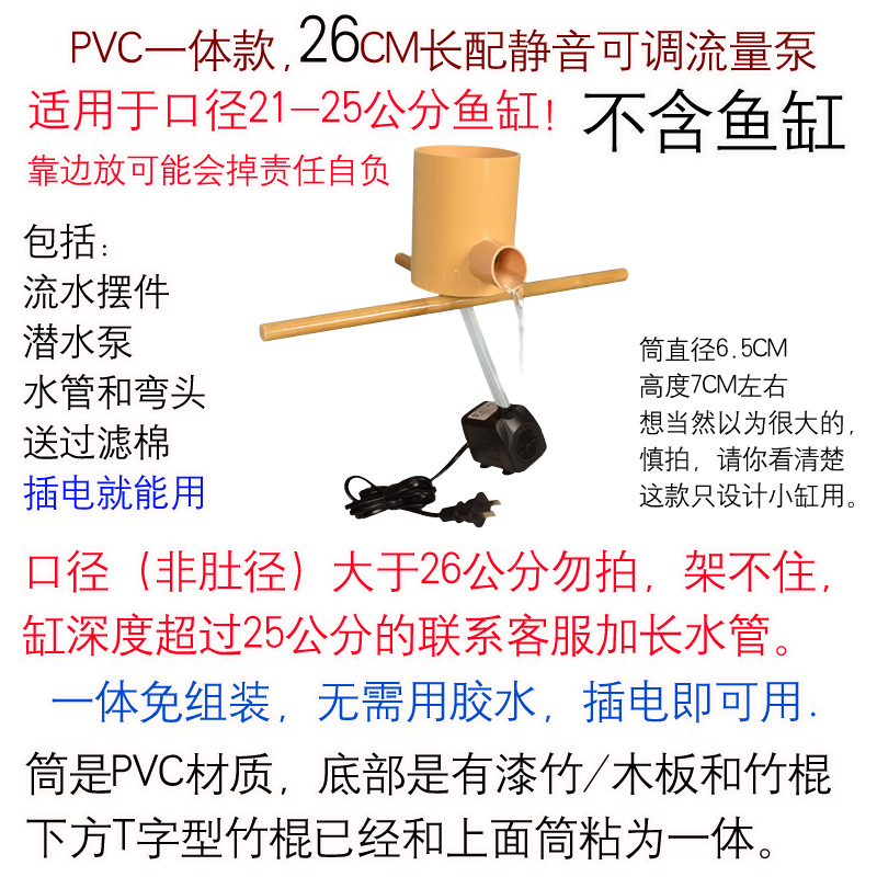 • PVC 일체형 모델, 길이 26cm, 펌프 및 파이프 + 오버플로 방지 배플 포함