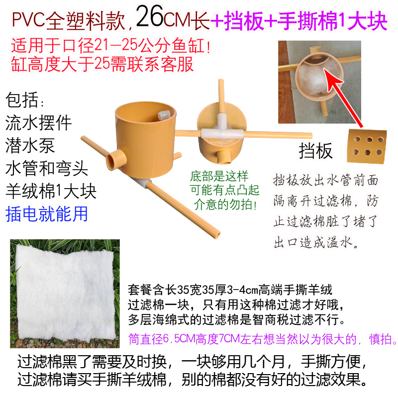 • PVC 일체형 모델, 길이 26cm, 펌프 및 튜브 + 오버플로 방지 배플 + 손으로 찢은 면 1개 포함