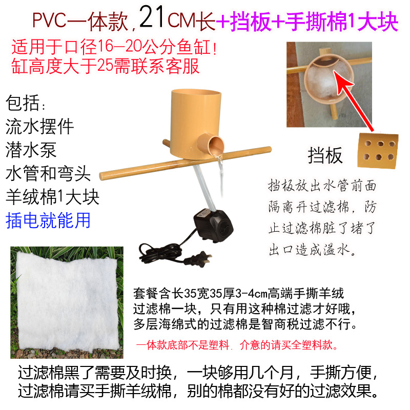 • PVC 일체형 모델, 길이 21cm, 펌프 및 튜브 + 오버플로 방지 배플 + 손으로 찢은 면 1개 포함