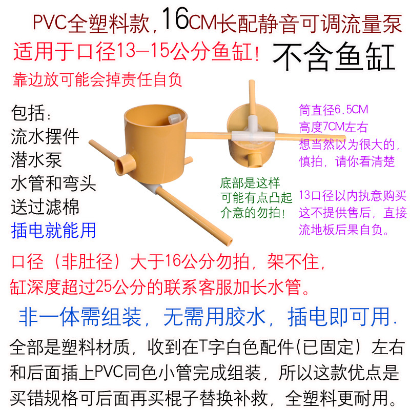 • 펌프와 튜브 + 오버플로 방지 배플을 갖춘 PVC 일체형 모델 길이 16cm