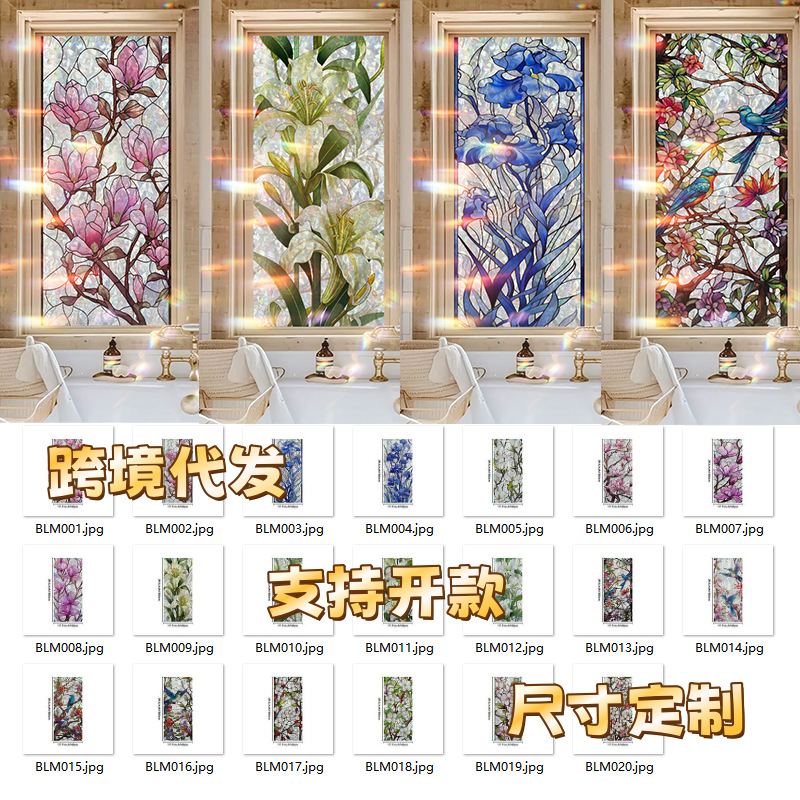 다채로운 초승달 유리 스티커, 정전기 프라이버시 유리 필름, 보헤미안 스타일 꽃무늬, 변색되지 않는 제품을 위한 국경 간 전문 공급업체