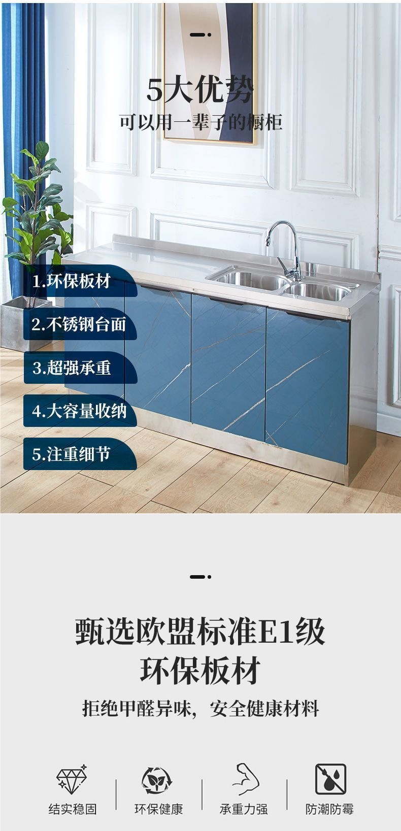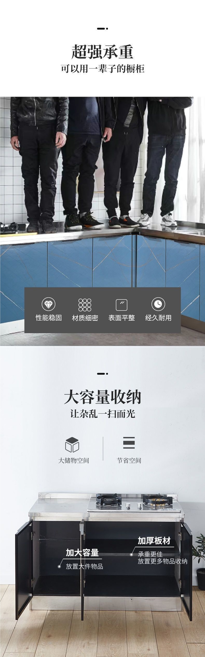 주방 캐비닛 스테인레스 스틸 스토브 찬장 조합 경제적 인 저장 일체형 스토브 캐비닛 저장 캐비닛 찬장 싱크 캐비닛스토어 가기