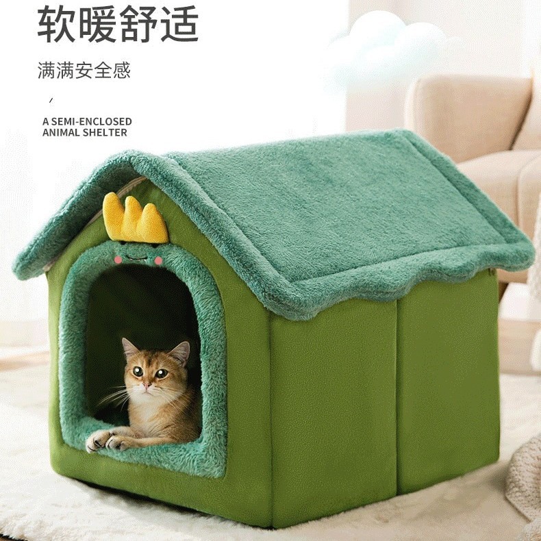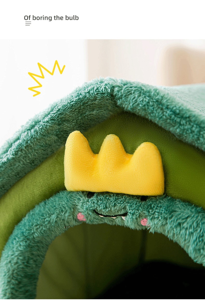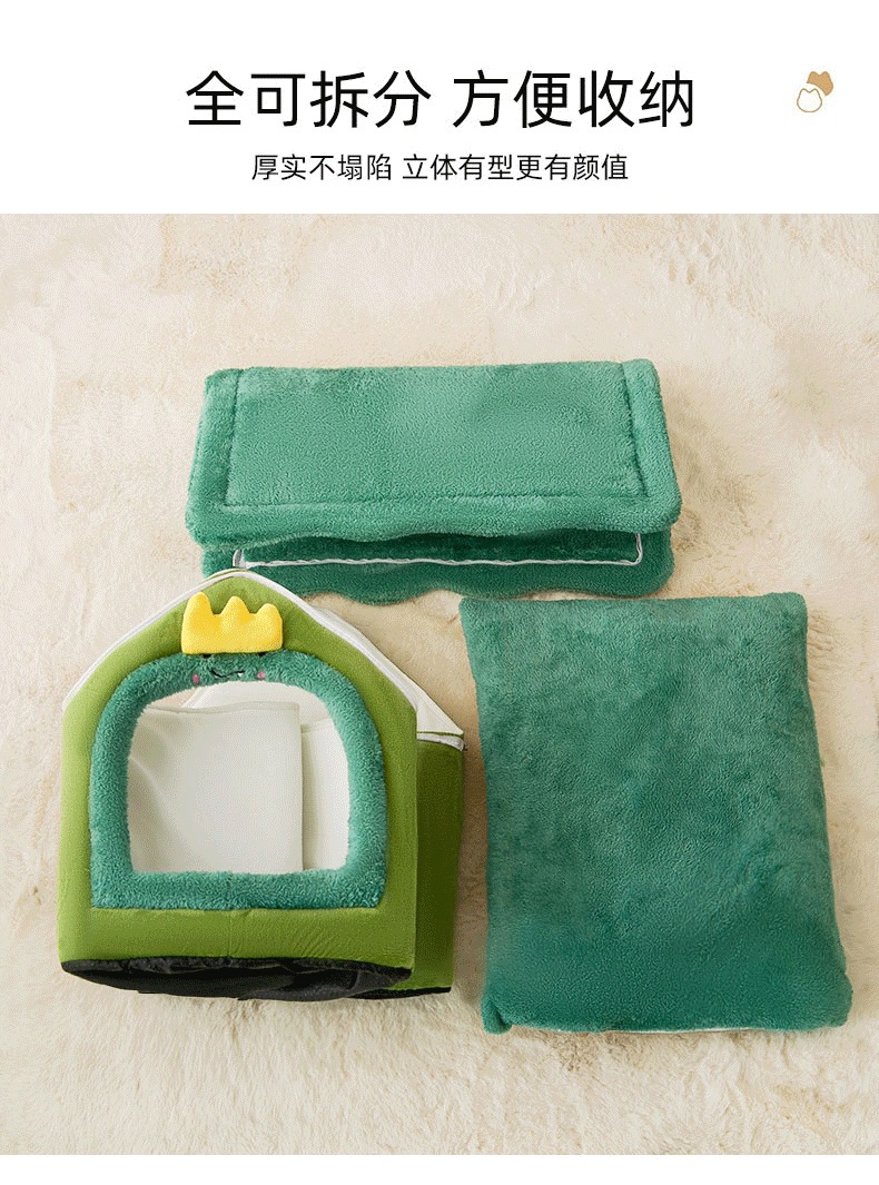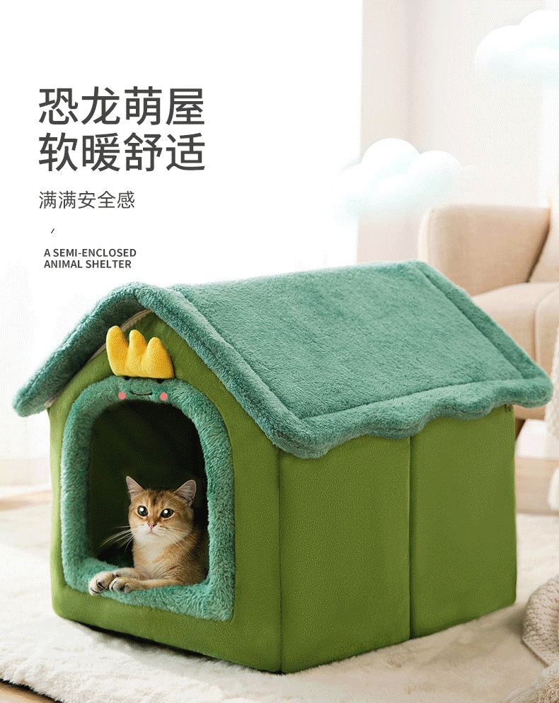 밀폐형 탈부착 및 세탁 가능한 개집, 사계절 고양이 둥지, 가을 겨울 텐트, 개 침대, 애완 동물 둥지, 녹색 공룡 집