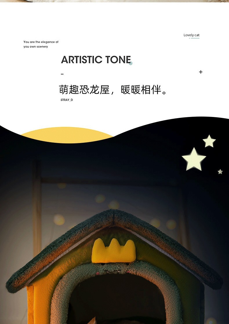 밀폐형 탈부착 및 세탁 가능한 개집, 사계절 고양이 둥지, 가을 겨울 텐트, 개 침대, 애완 동물 둥지, 녹색 공룡 집스토어 가기
