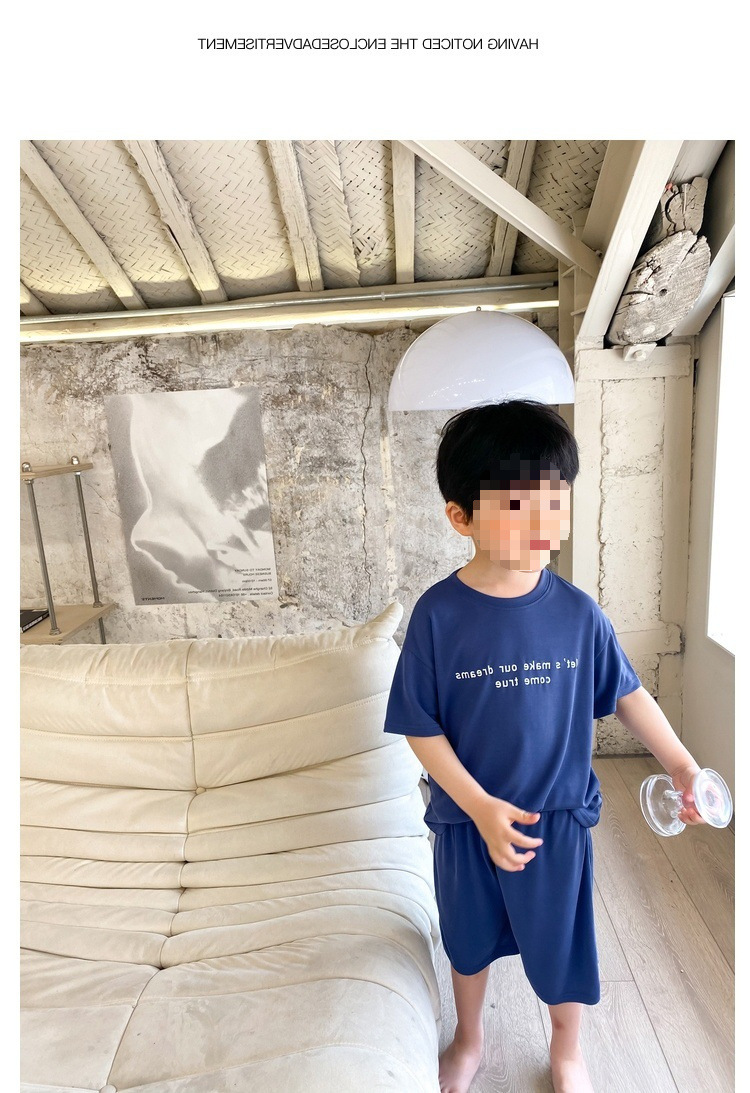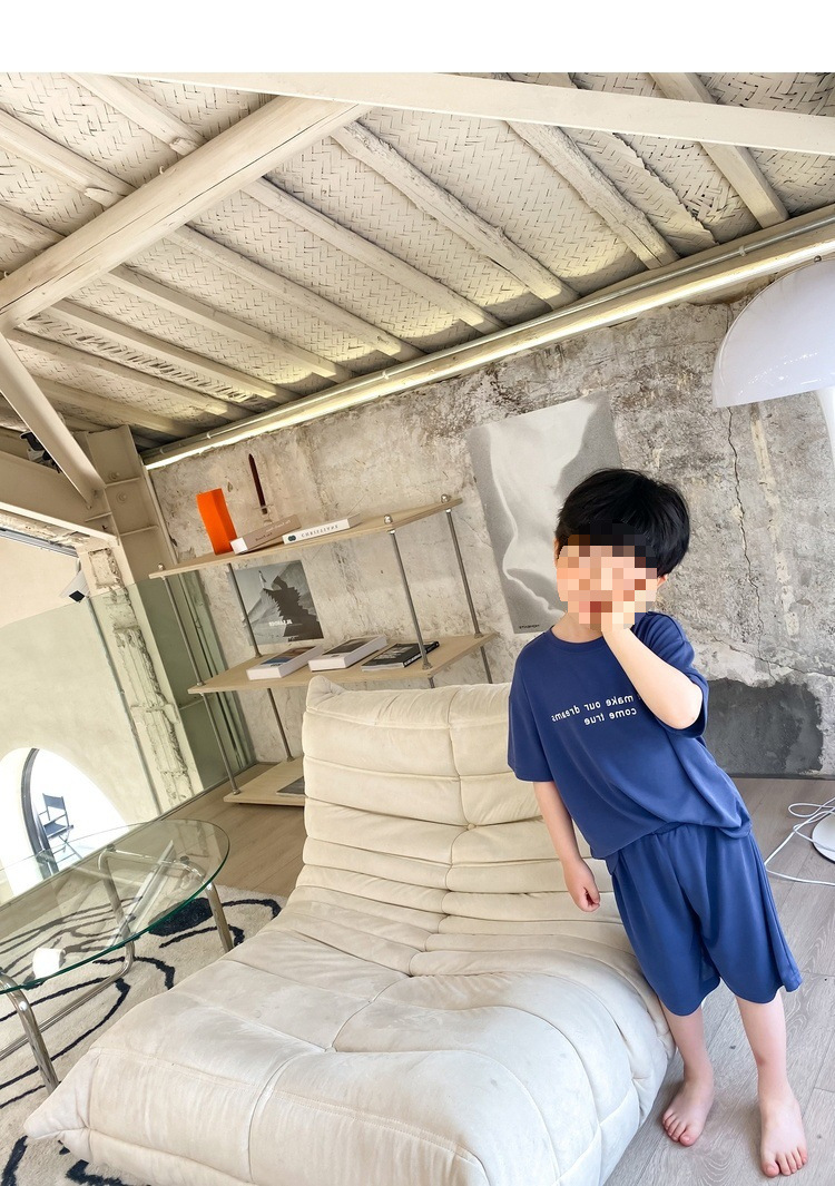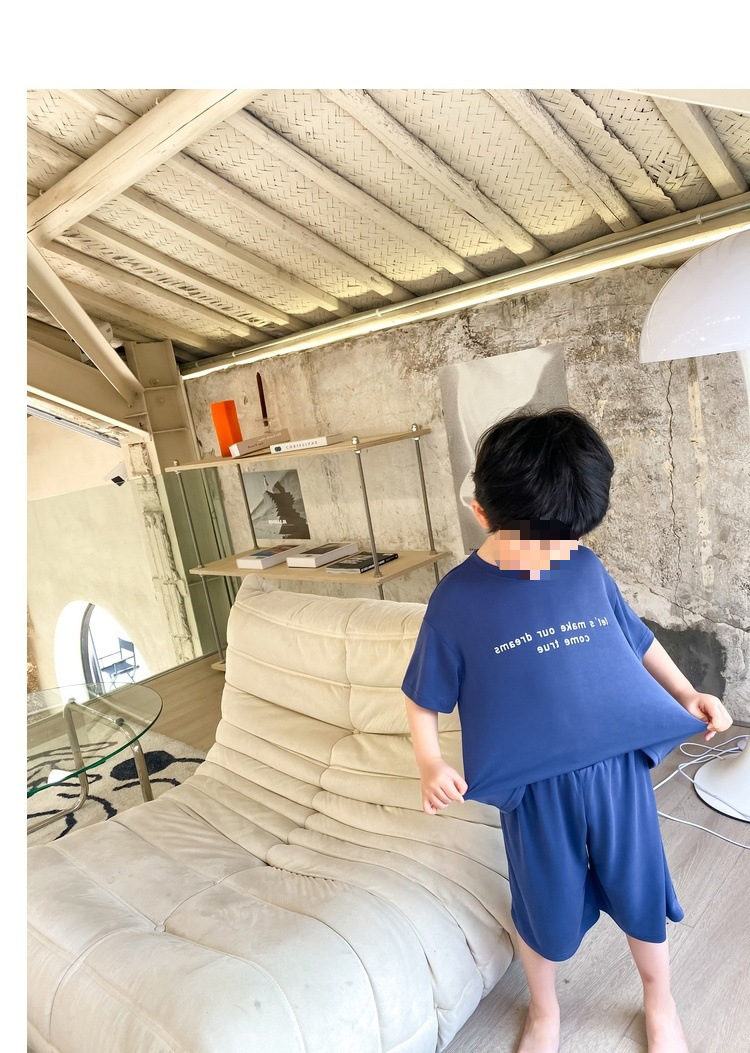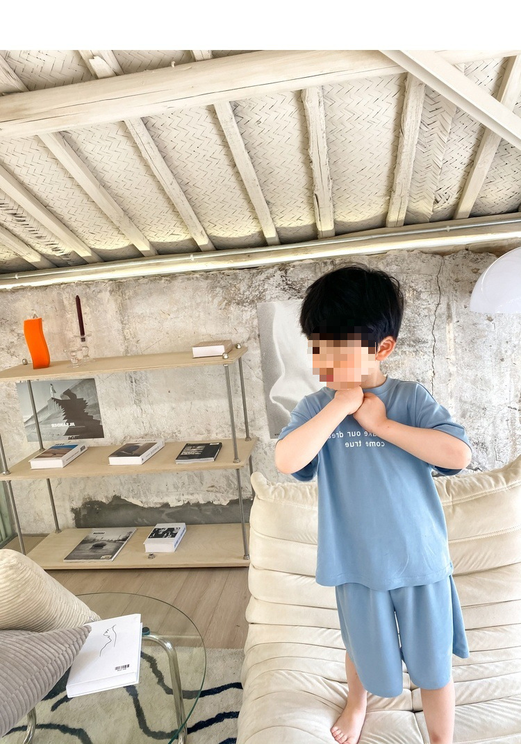 모달 아동 잠옷 2025 여름 신작 중대형 아동 남아 가정복 반팔 캐주얼 에어컨 슈트스토어 가기