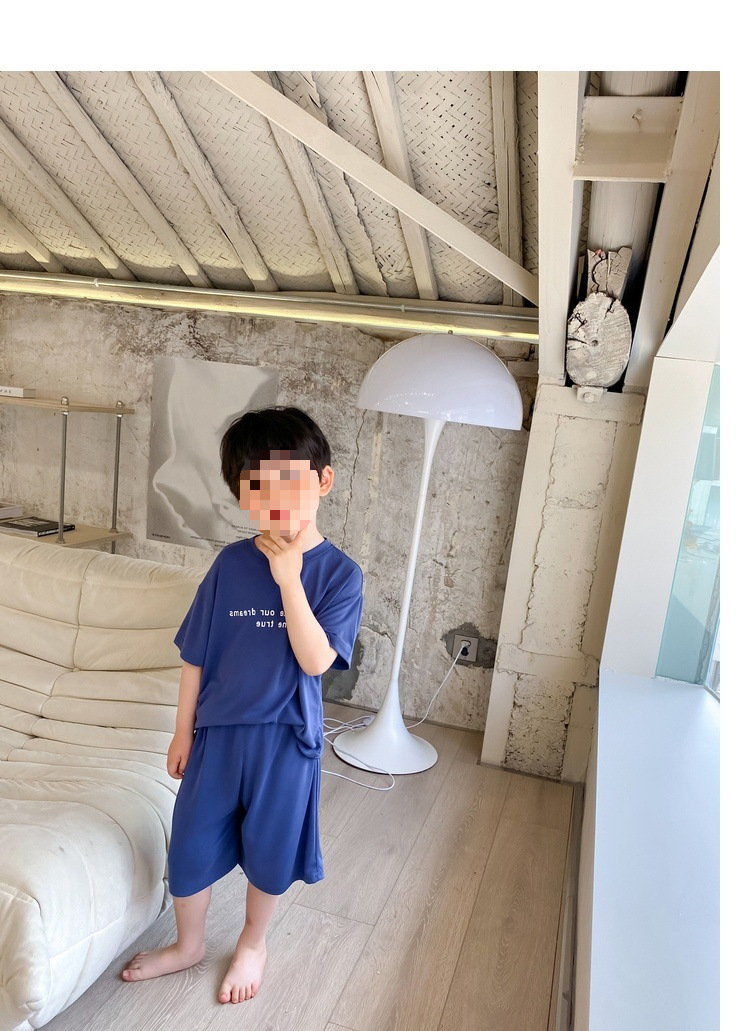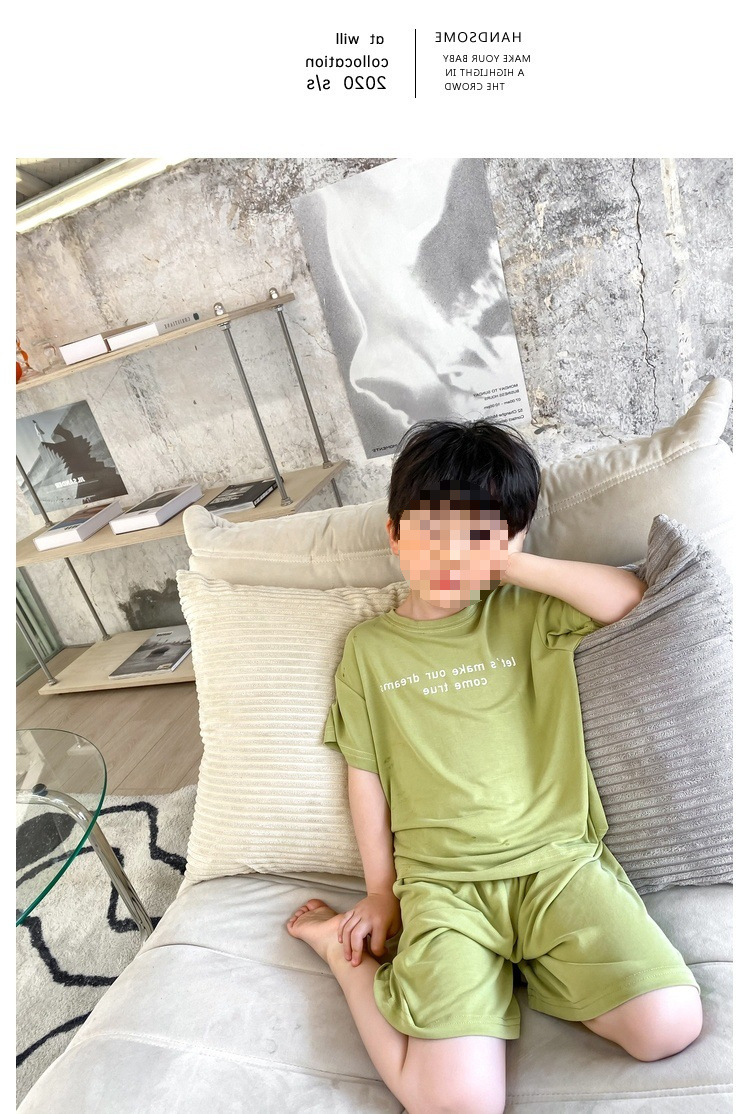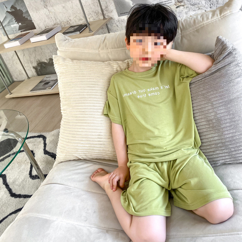 모달 아동 잠옷 2025 여름 신작 중대형 아동 남아 가정복 반팔 캐주얼 에어컨 슈트