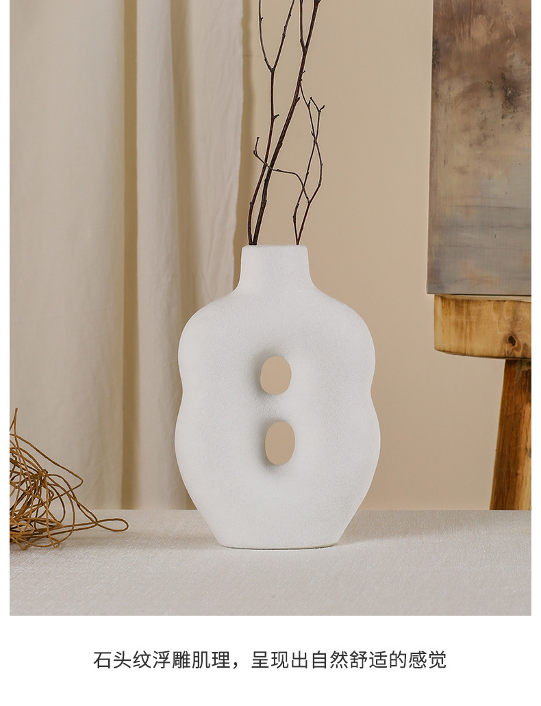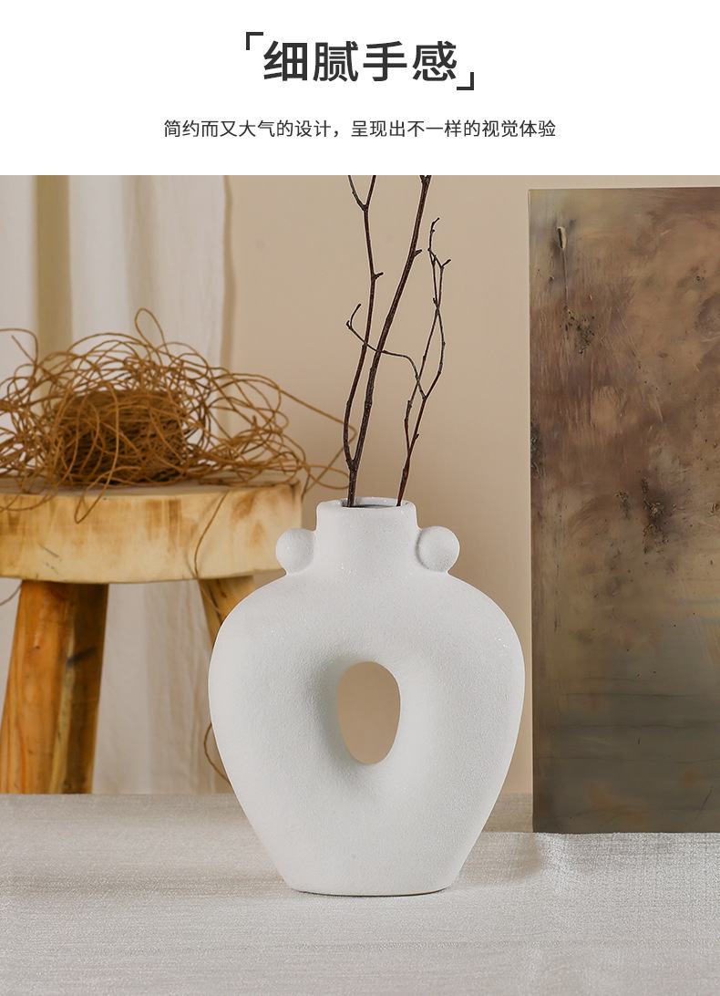 Jifeng 세라믹 꽃병 일러스트 하이 엔드 아트 화이트 간단한 북유럽 스타일 룸 장식 수경 꽃 장치