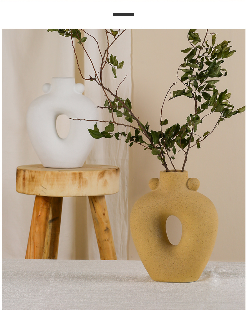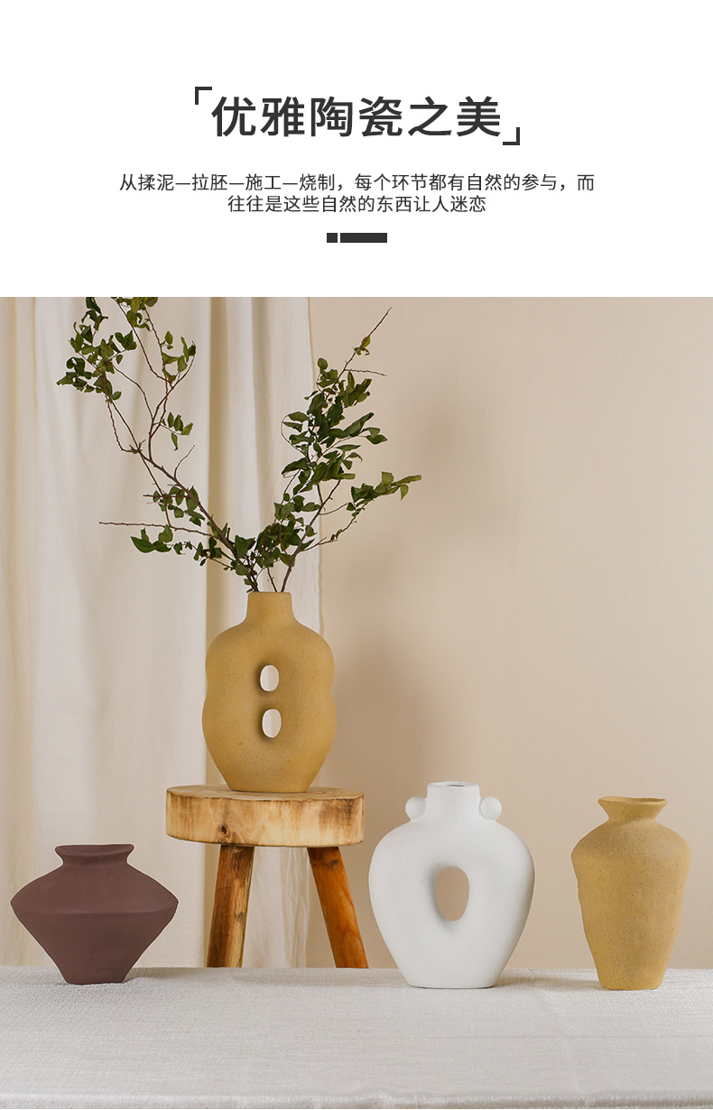 Jifeng 세라믹 꽃병 일러스트 하이 엔드 아트 화이트 간단한 북유럽 스타일 룸 장식 수경 꽃 장치스토어 가기