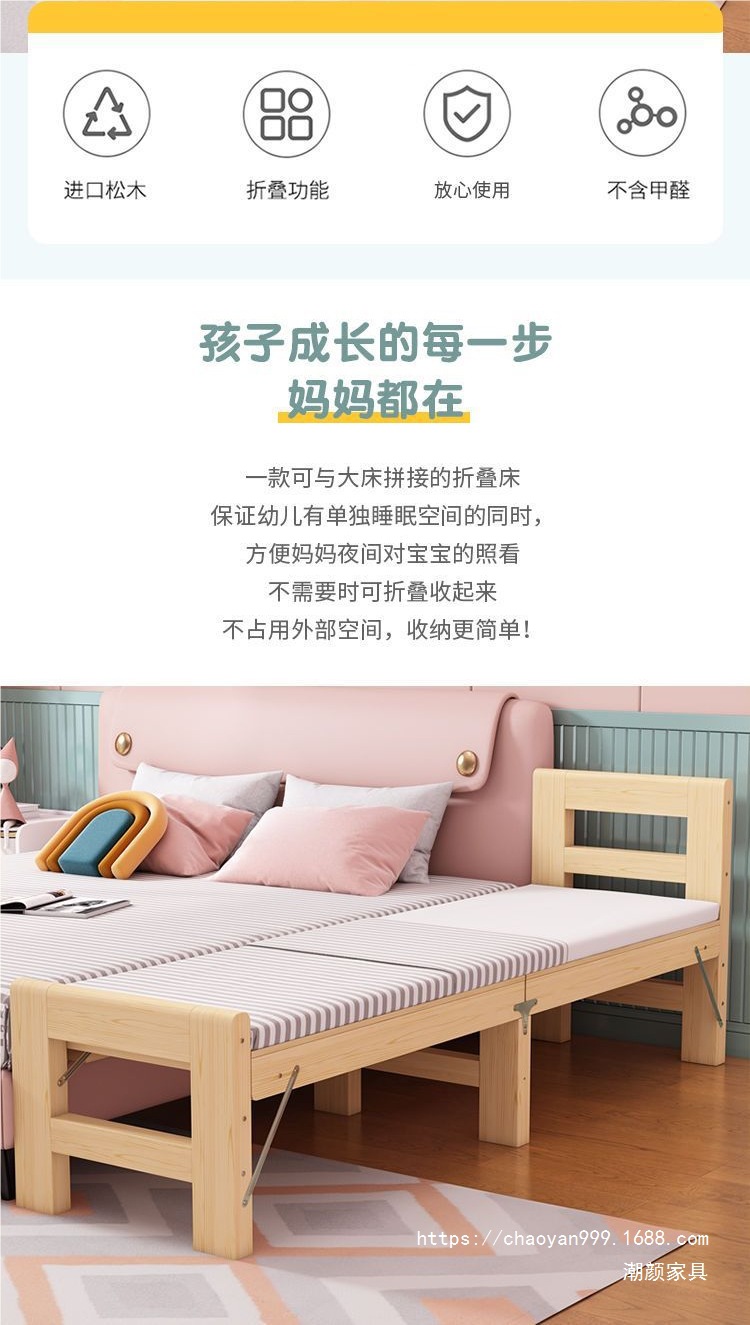 접이식 확장 침대 접합 침대 옆 침대 가정용 유아용 침대 확장 어린이 침대 더블 낮잠 침대 성인 침대