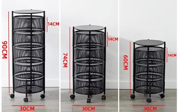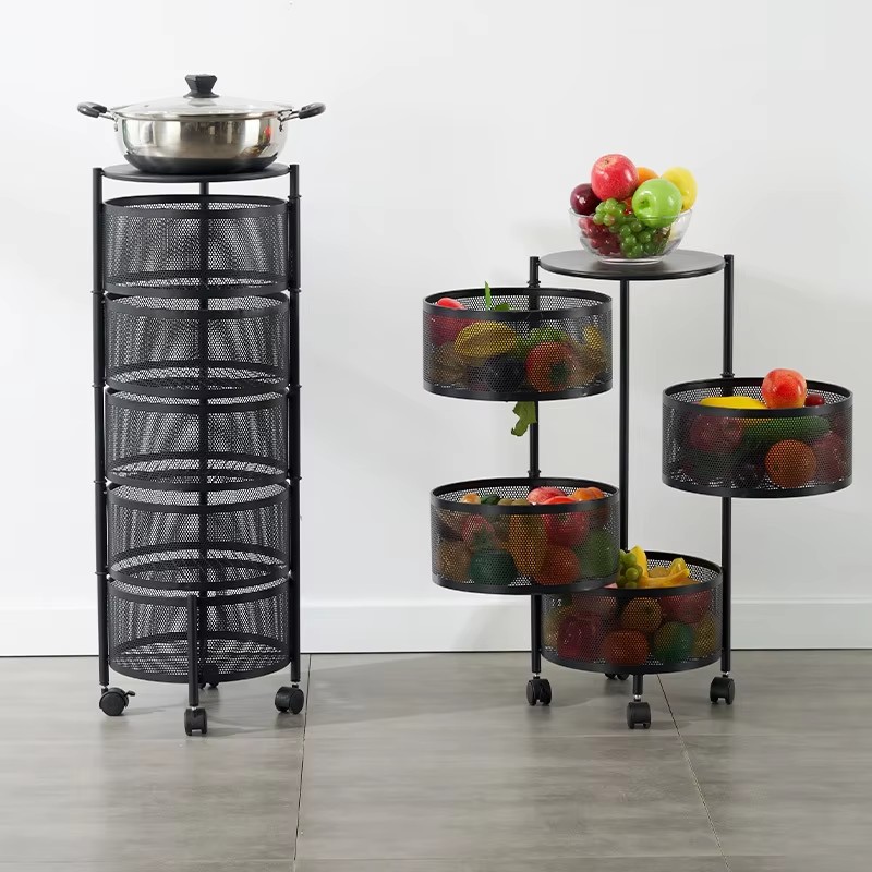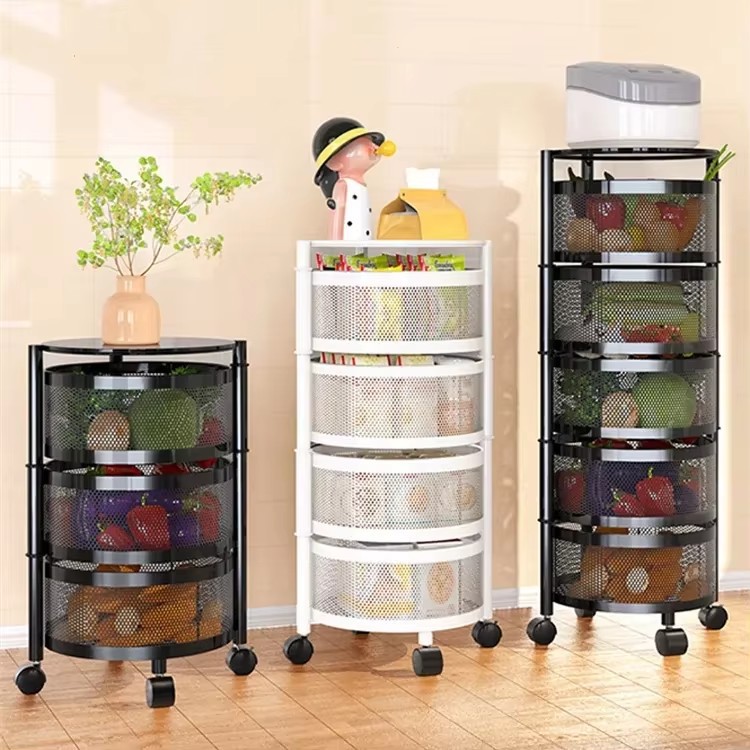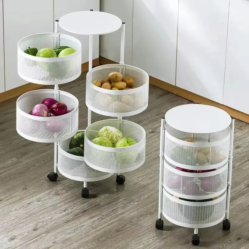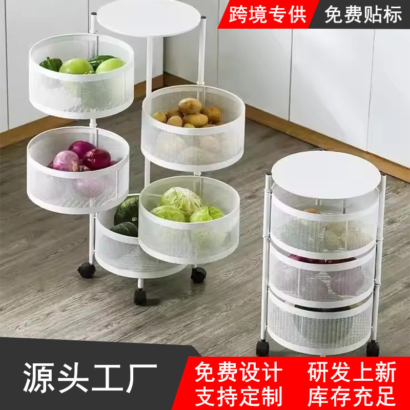 맞춤형 가정용 회전식 다층 트롤리 수납선반, 야채 및 과일 정리 바구니, 바닥형 수납랙스토어 가기