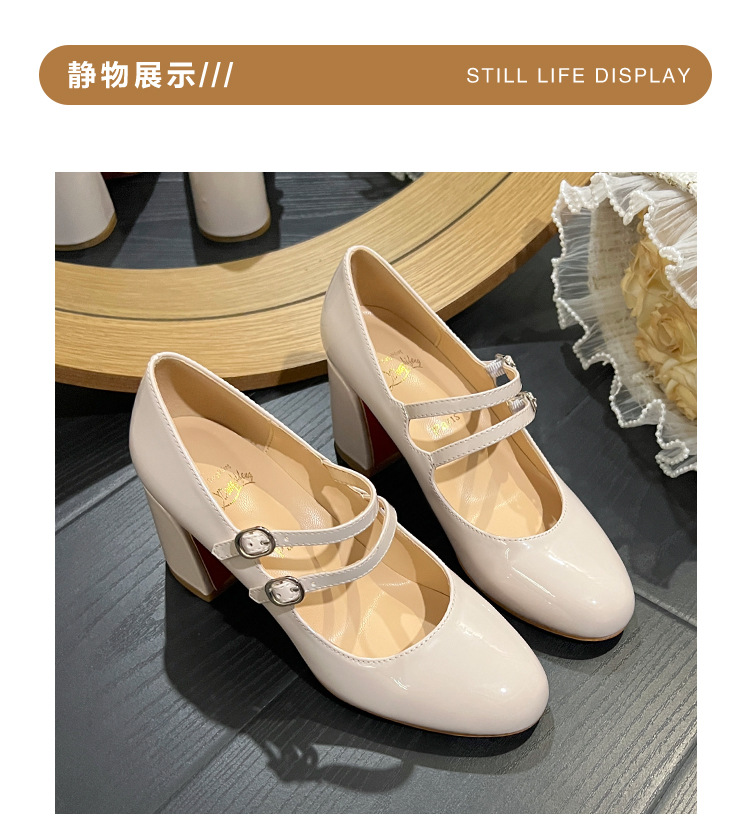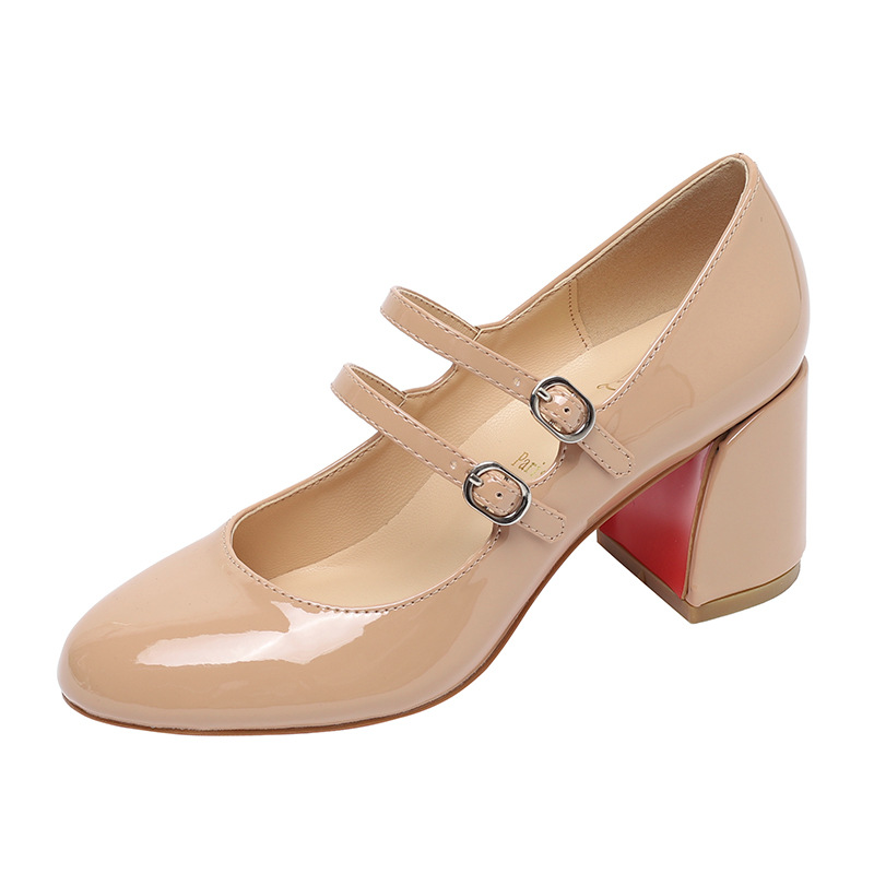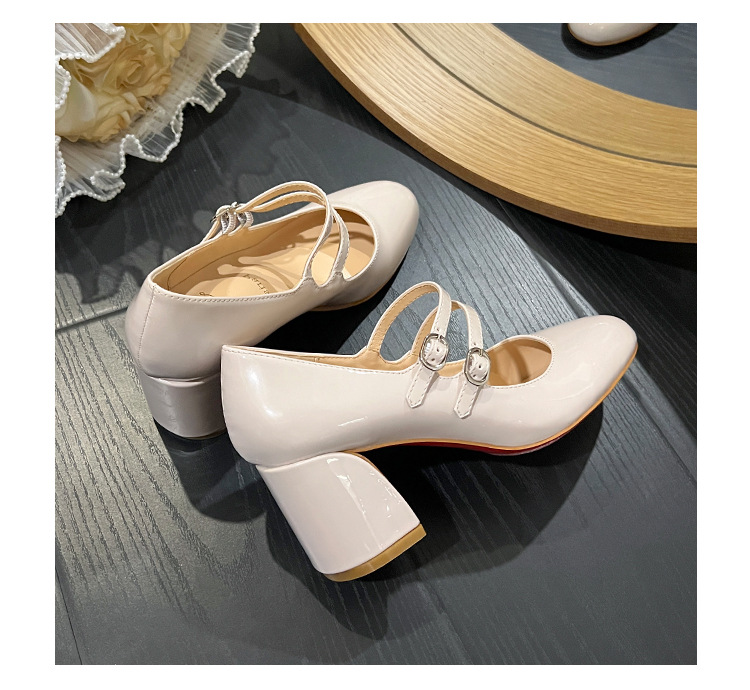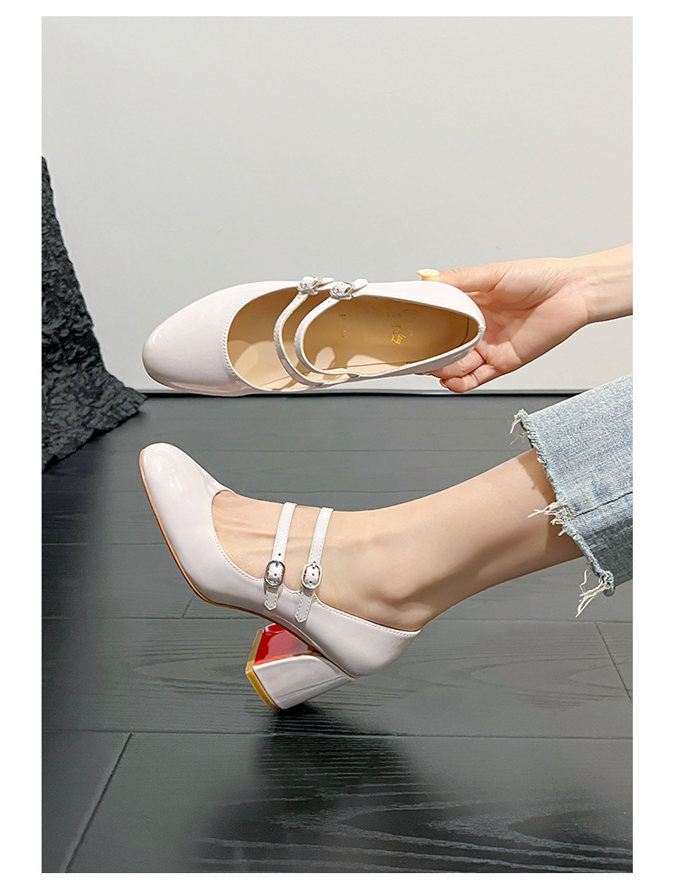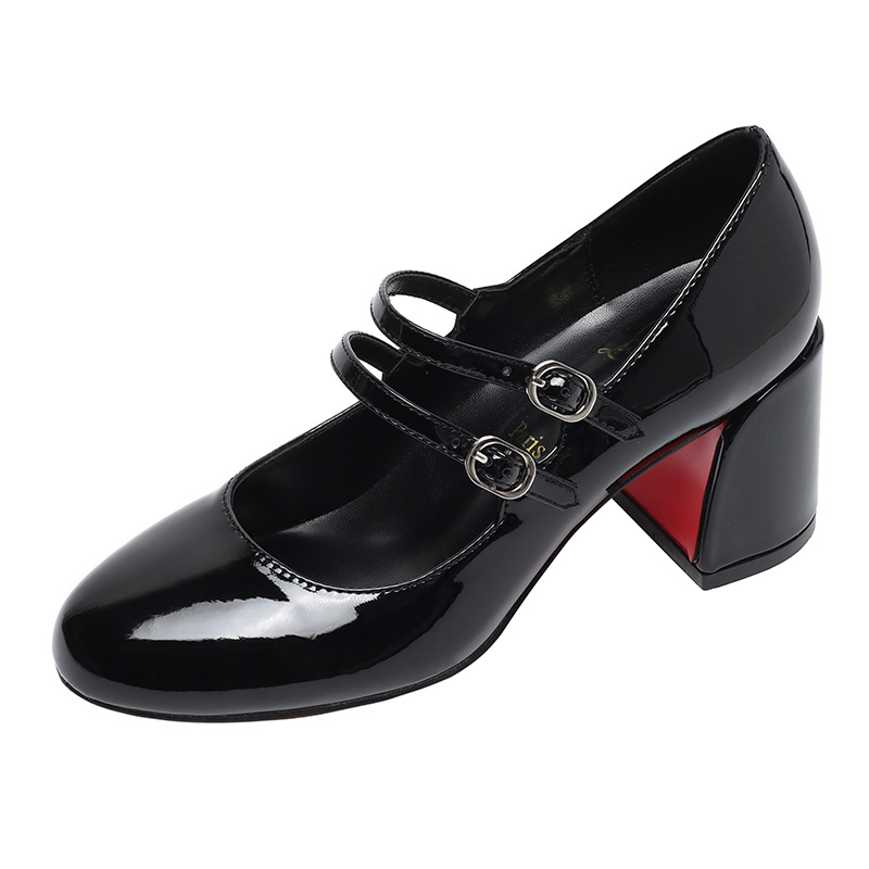 사계절 통근 스타일 단색 라운드 토 더블 버클 두꺼운 굽 슈퍼 편안한 메리제인 하이힐 캠퍼스 스타일 소녀용