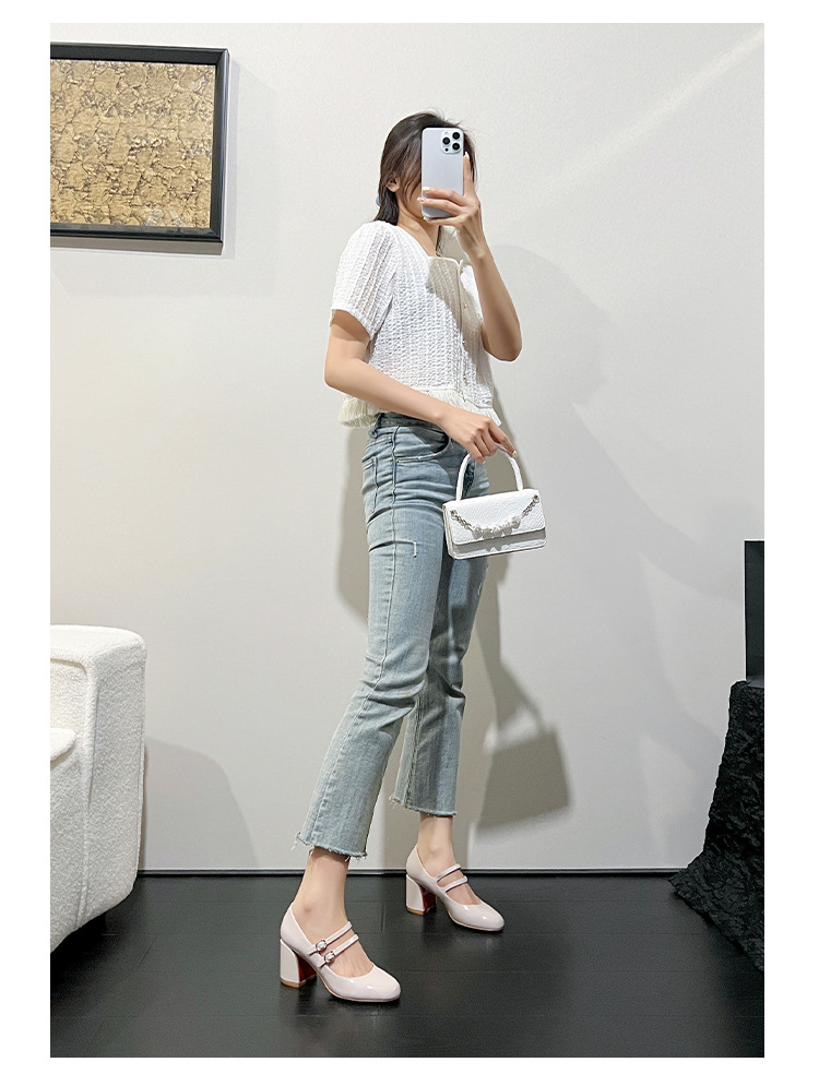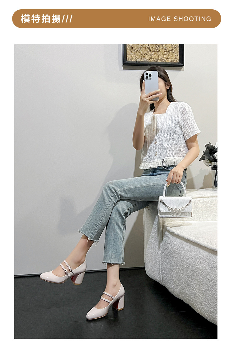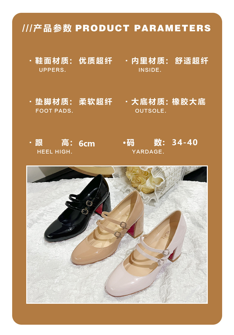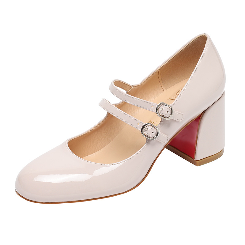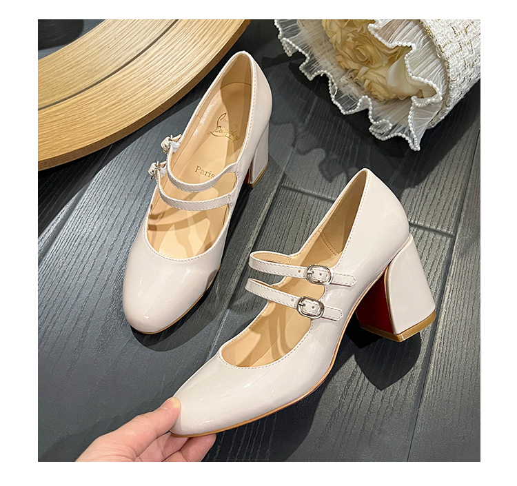 사계절 통근 스타일 단색 라운드 토 더블 버클 두꺼운 굽 슈퍼 편안한 메리제인 하이힐 캠퍼스 스타일 소녀용