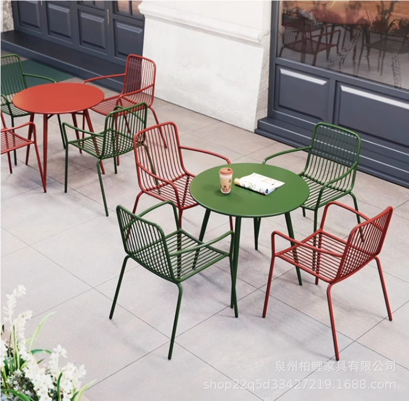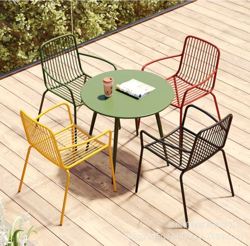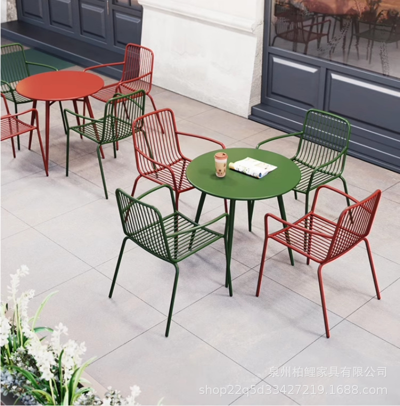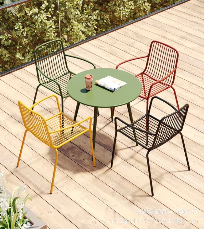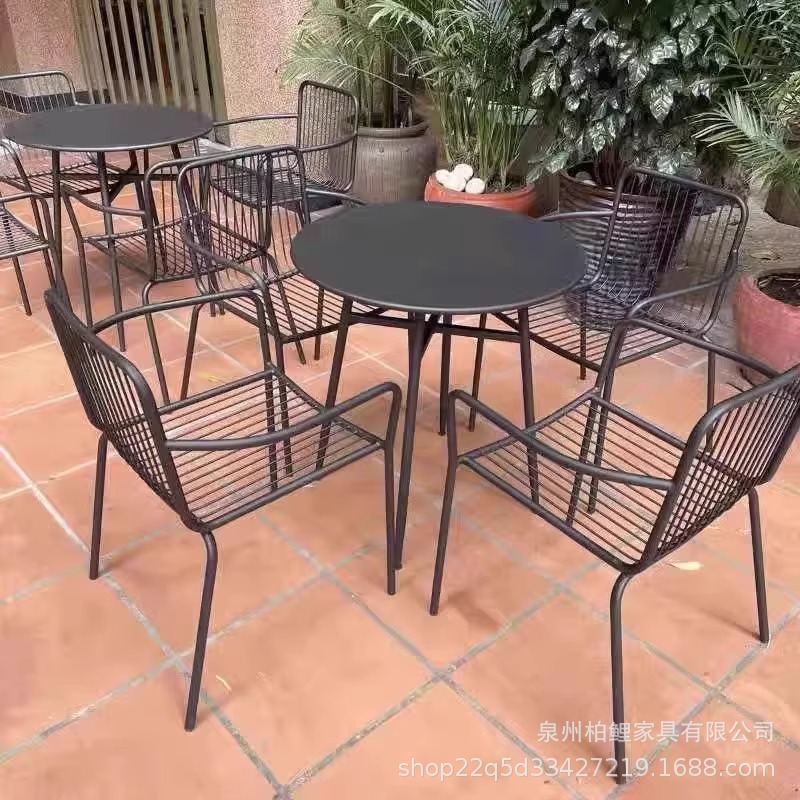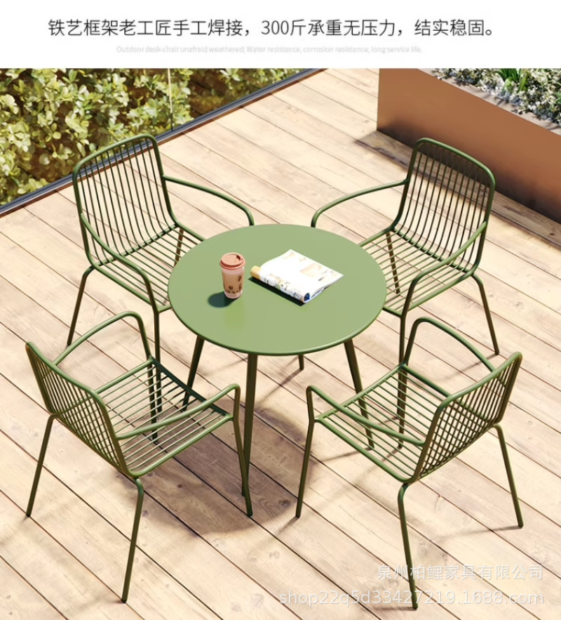 야외 테이블과 의자 조합 레저 테이블과 의자 철제 밀크티 숍 카페 발코니 야외 안뜰 정원 테이블과 의자 조합스토어 가기