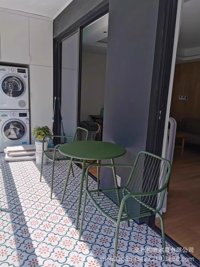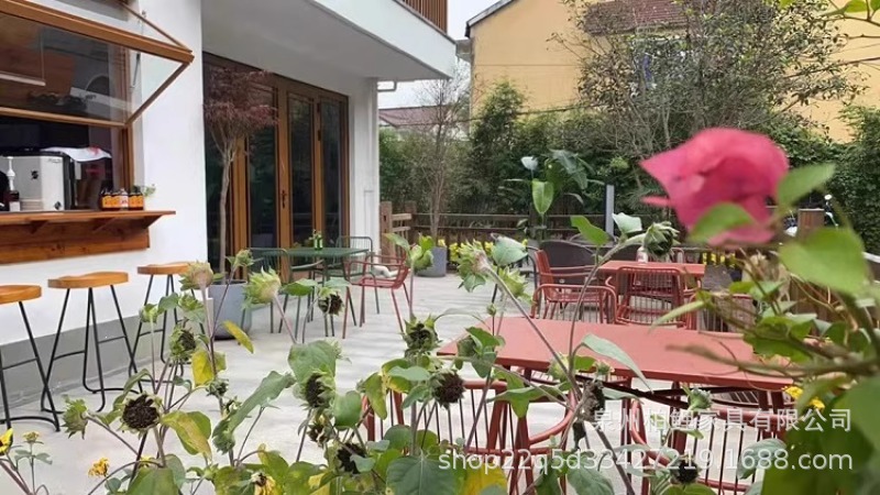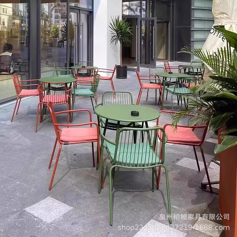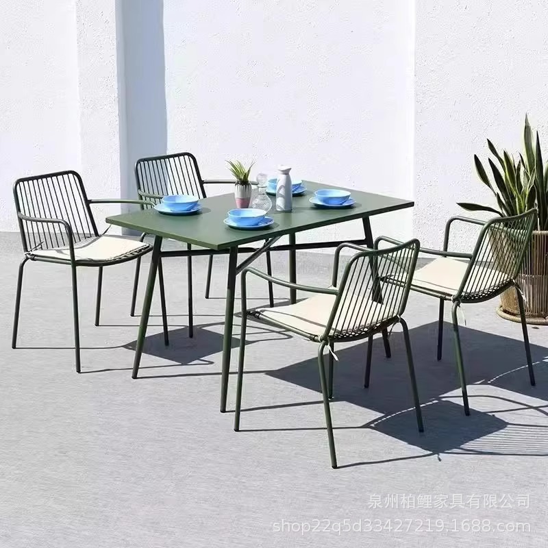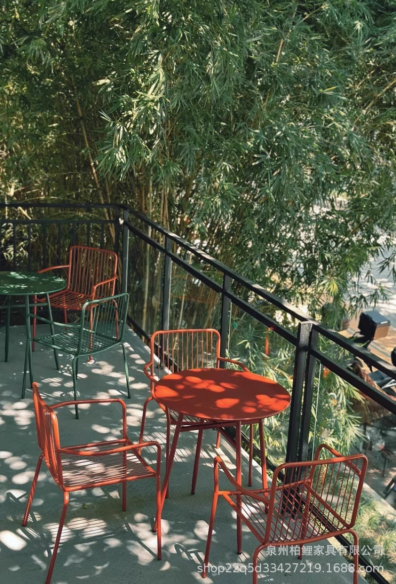 야외 테이블과 의자 조합 레저 테이블과 의자 철제 밀크티 숍 카페 발코니 야외 안뜰 정원 테이블과 의자 조합스토어 가기