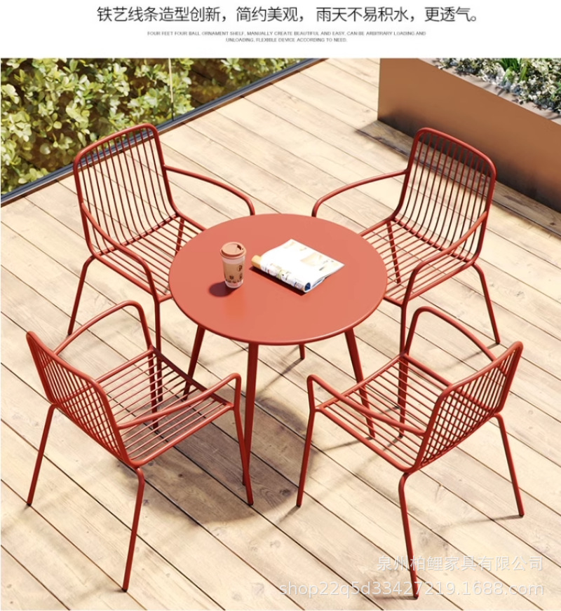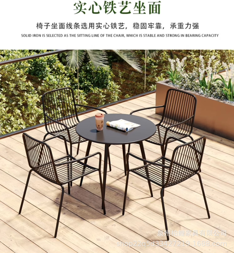야외 테이블과 의자 조합 레저 테이블과 의자 철제 밀크티 숍 카페 발코니 야외 안뜰 정원 테이블과 의자 조합
