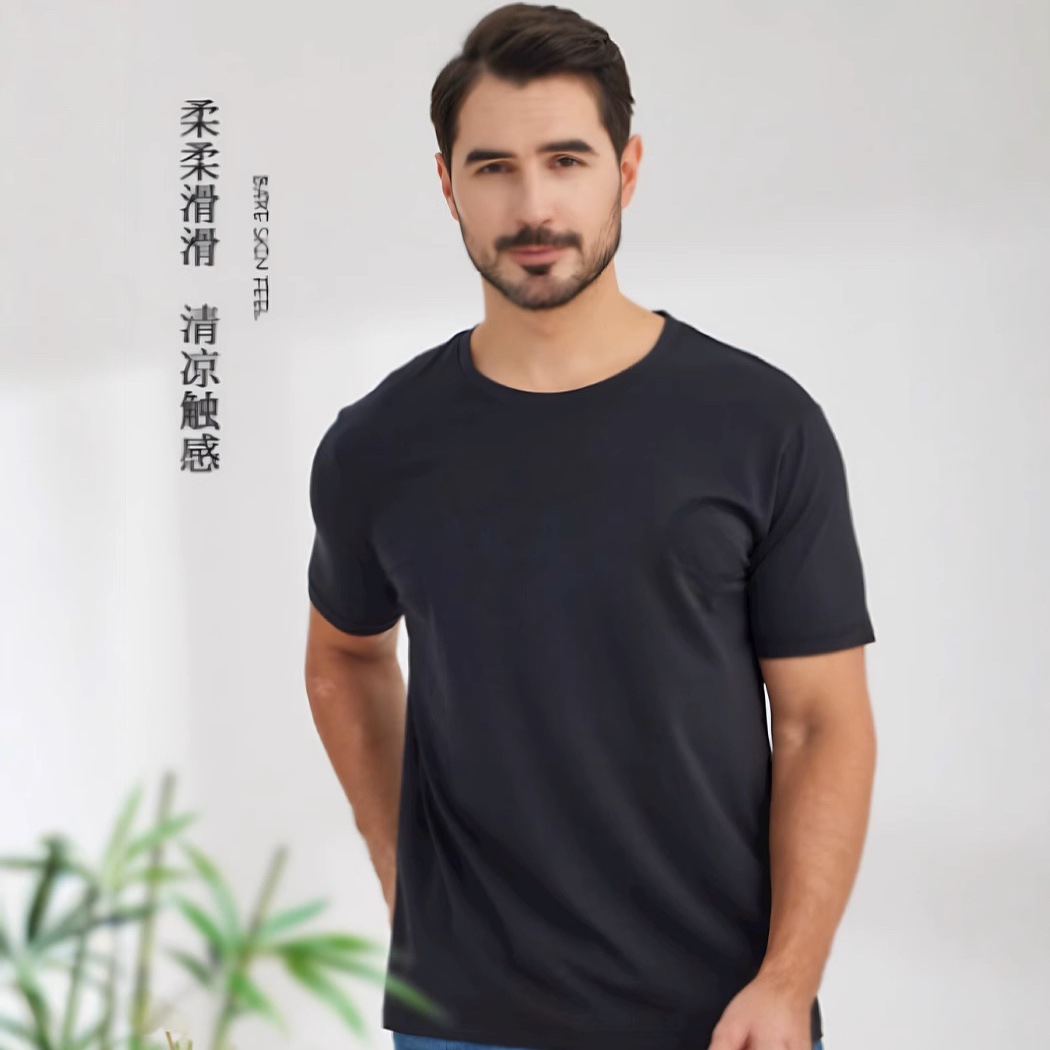 반팔 티셔츠 남성용 대나무 섬유 면 머서라이즈 신제품 쿨링 바닥 셔츠 화이트 대형 통기성 여름 모달 반팔