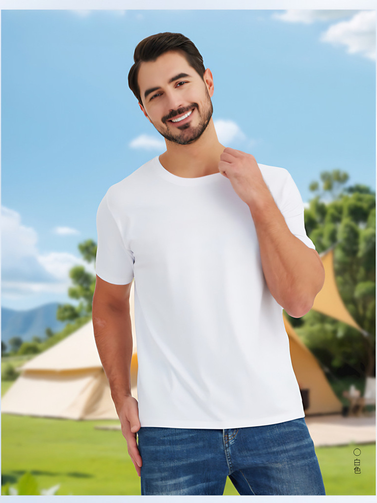 반팔 티셔츠 남성용 대나무 섬유 면 머서라이즈 신제품 쿨링 바닥 셔츠 화이트 대형 통기성 여름 모달 반팔스토어 가기