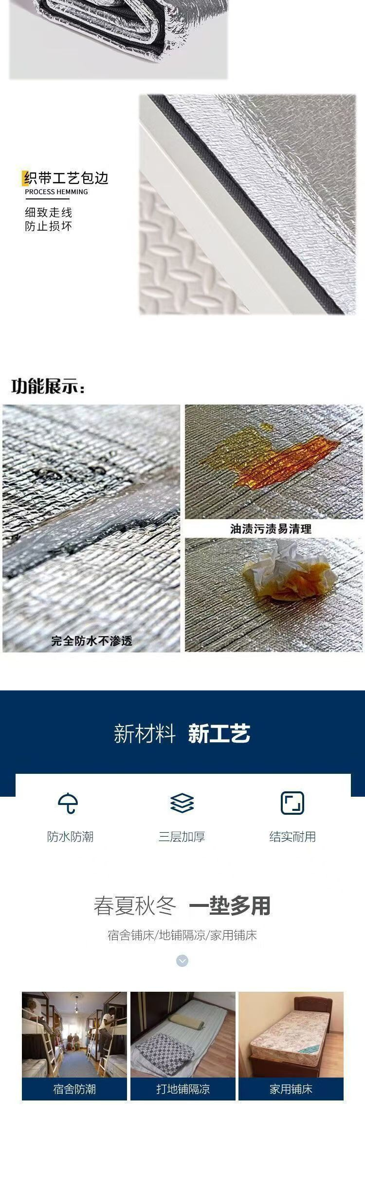 방습 매트 두꺼운 야외 휴대용 방수 잔디 피크닉 홈 텐트 알루미늄 필름 싱글 기숙사 슬리핑 패드 바닥 매트
