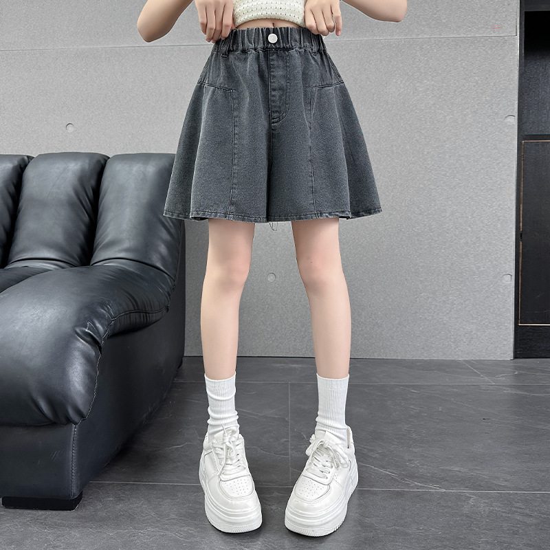 여아 여름 데님 반바지 2025 새로운 스타일 큰 어린이의 세련되고 다재다능한 바지와 스커트 겉옷 얇은 핫팬츠 여름 바지스토어 가기