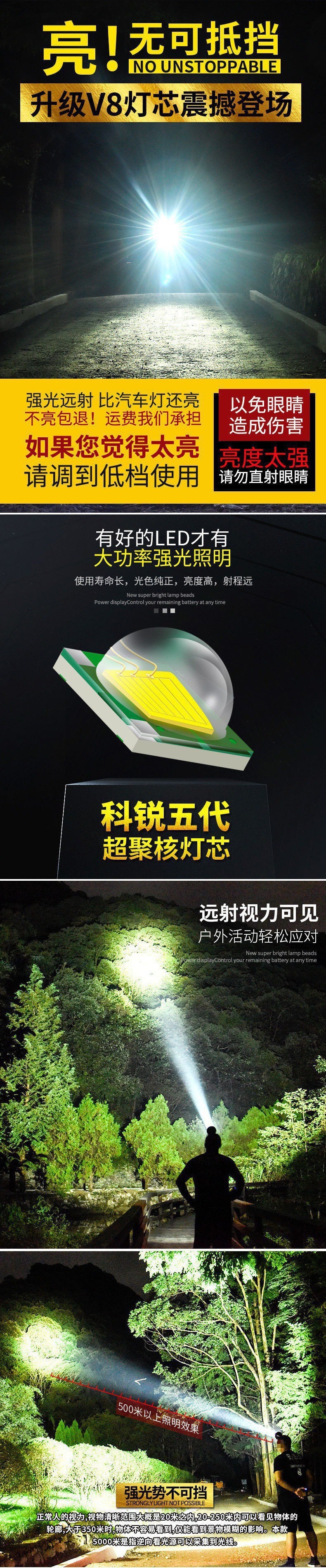 강한 빛의 헤드라이트, 충전식 야외 장거리 초고휘도 헤드 장착형 손전등, 미터 크세논 야간 낚시 광부의 램프 및 기타 세부 정보스토어 가기