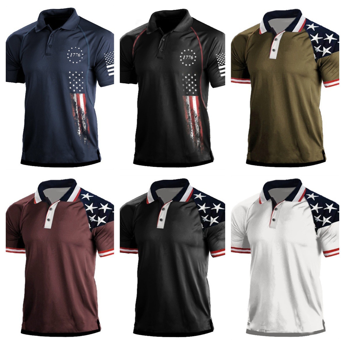 유럽과 미국의 국기 폴로 셔츠 프린트 tem 여름 3D 캐주얼 반팔 남성 골프 u 셔츠 버튼스토어 가기