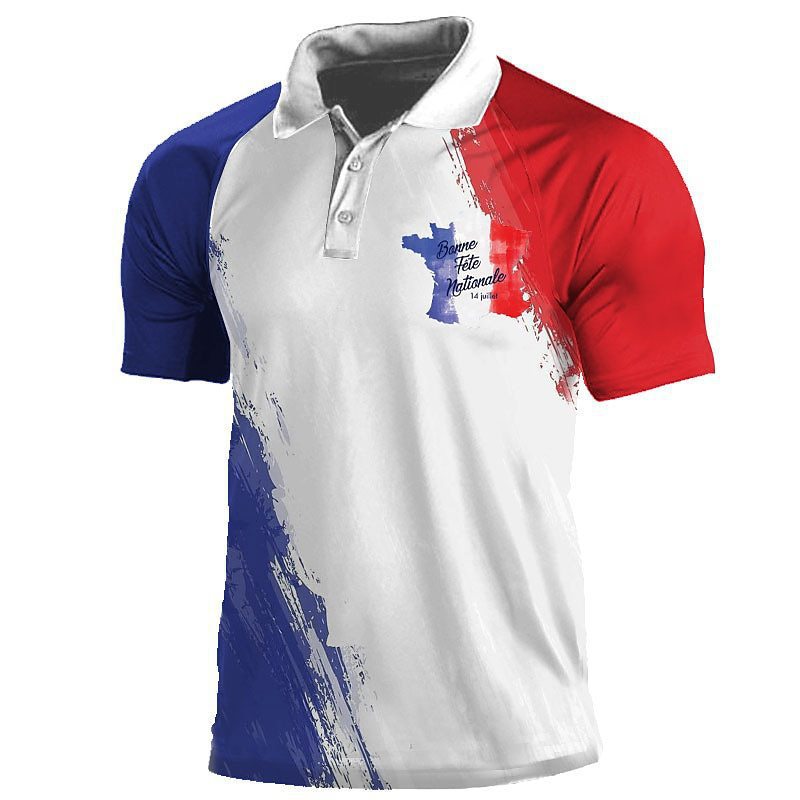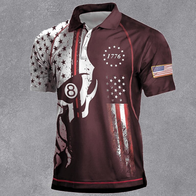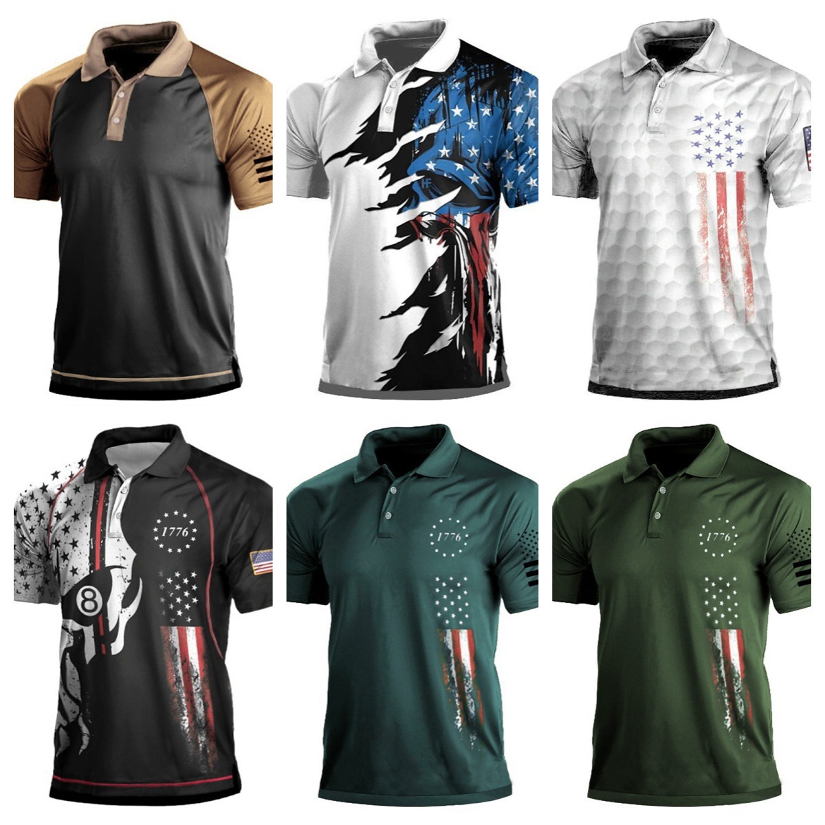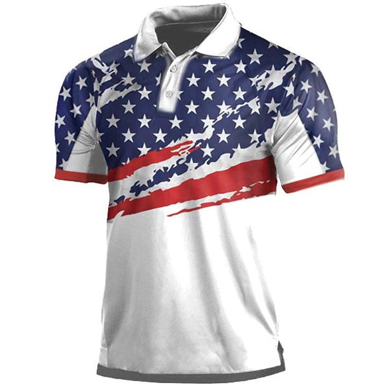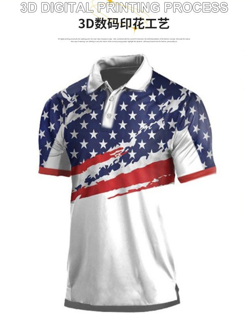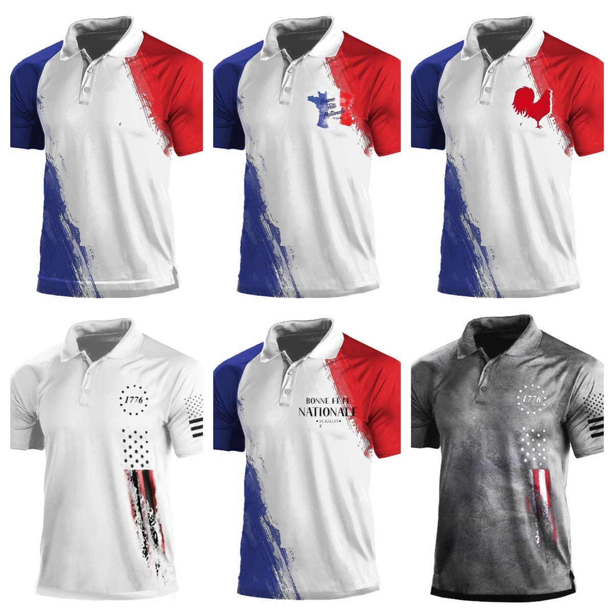 유럽과 미국의 국기 폴로 셔츠 프린트 tem 여름 3D 캐주얼 반팔 남성 골프 u 셔츠 버튼
