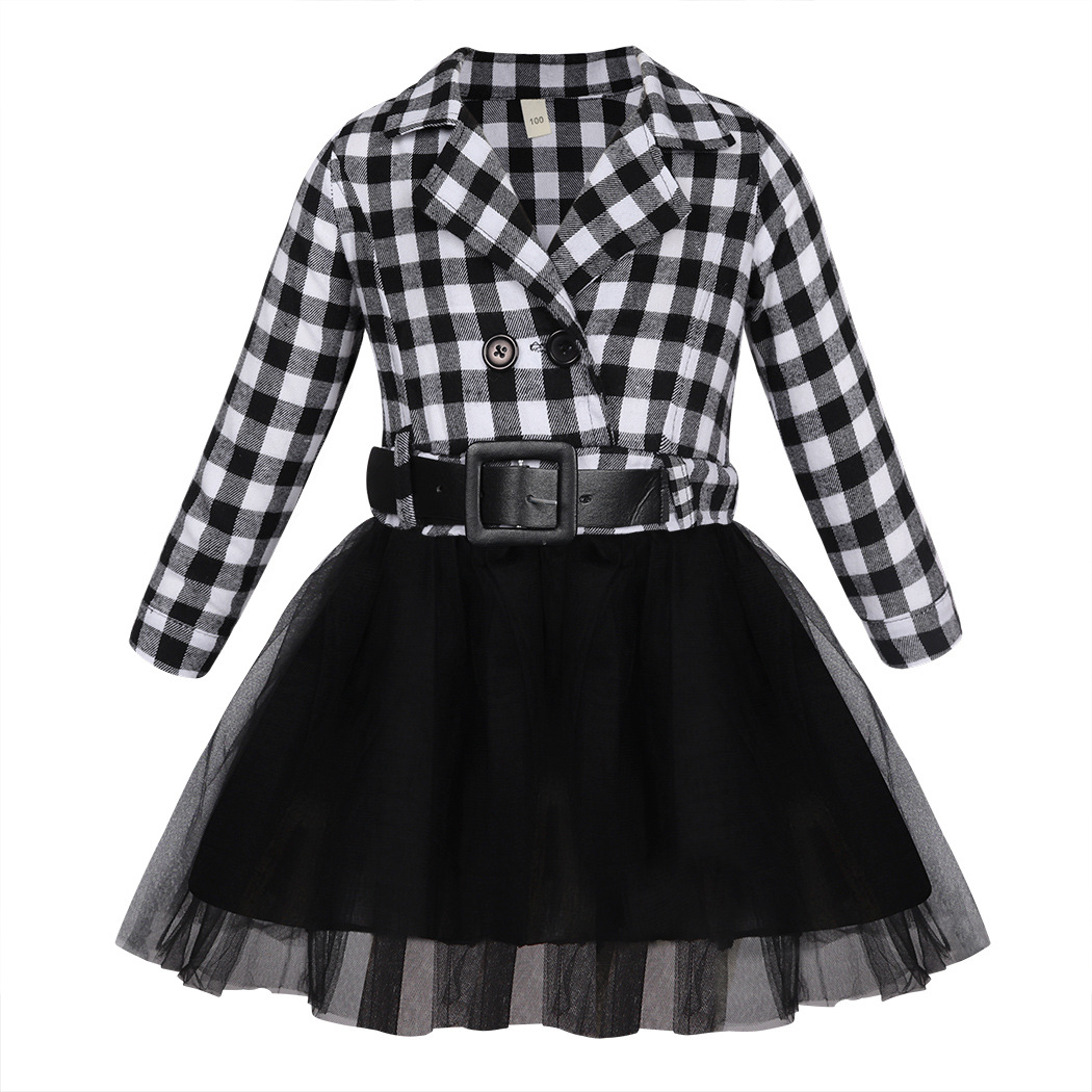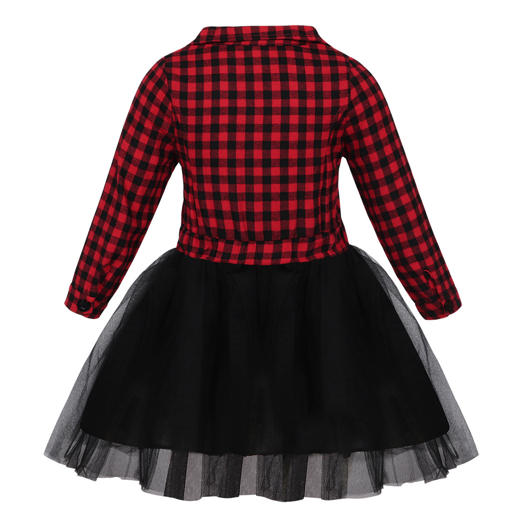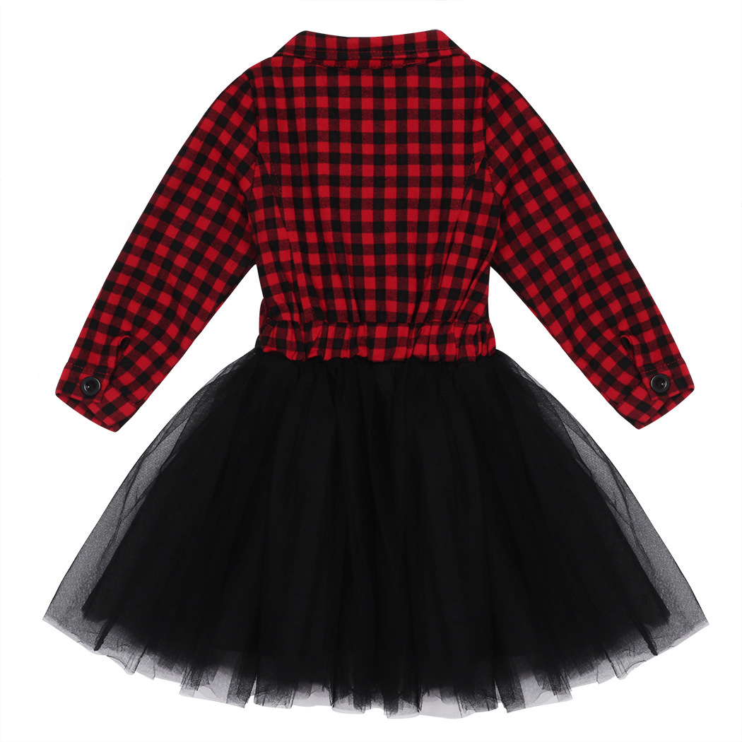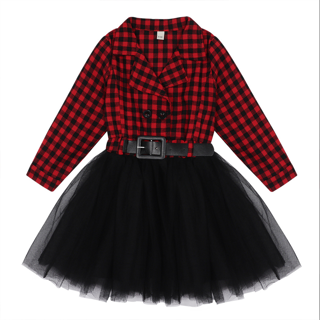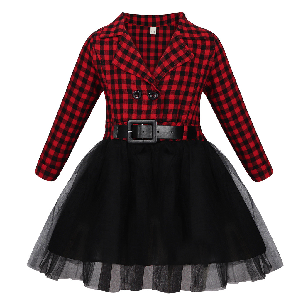 가을 겨울 크리스마스 패션 여자 긴 소매 격자 무늬 스티치 메쉬 스커트 레드 블랙 체크 벨트 드레스 드롭 배송