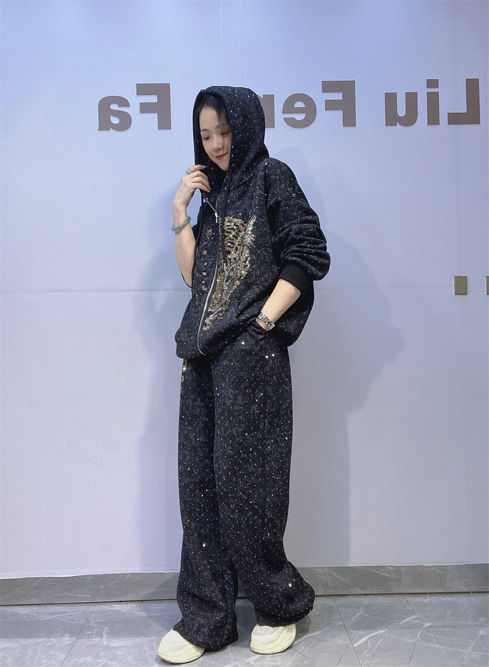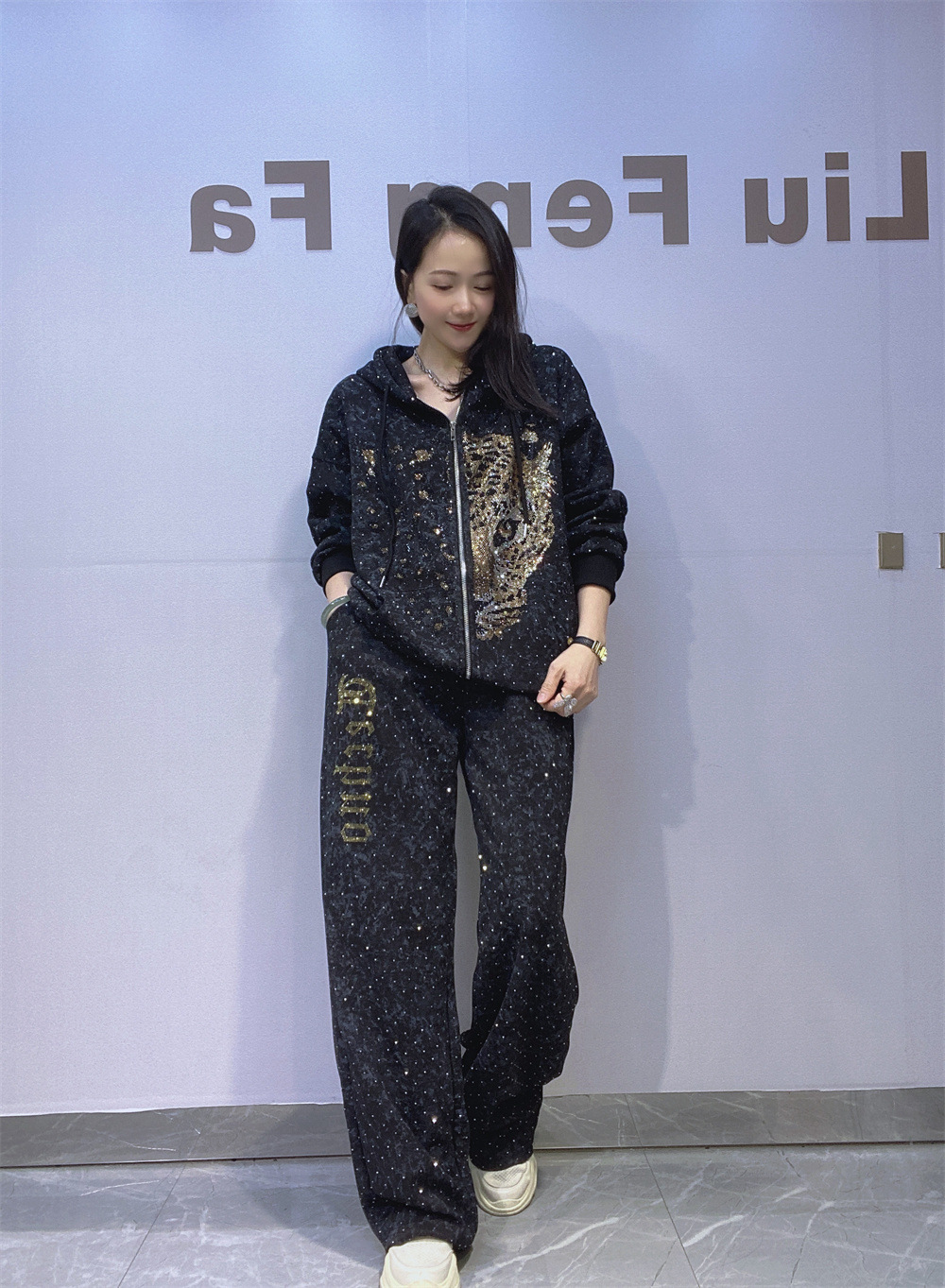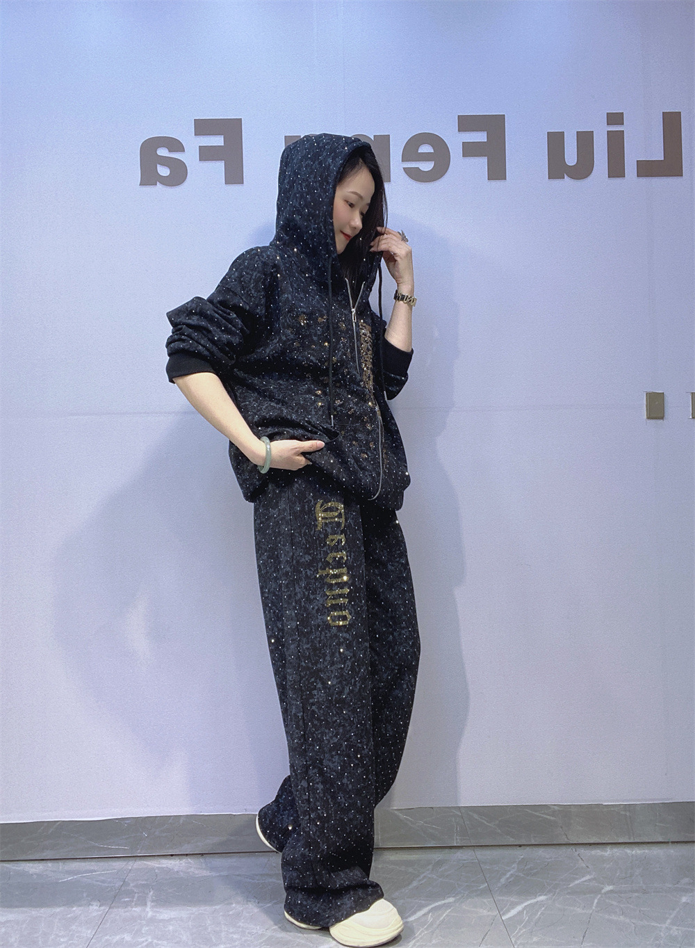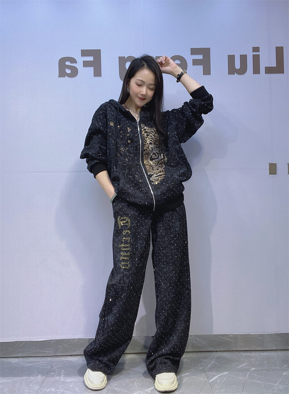 여성을위한 타이 염색 지퍼 카디건 대형 스웨트 슈트 가을 핫 다이아몬드 캐주얼 스트레이트 바지 야외 스포츠웨어 투피스 세트스토어 가기