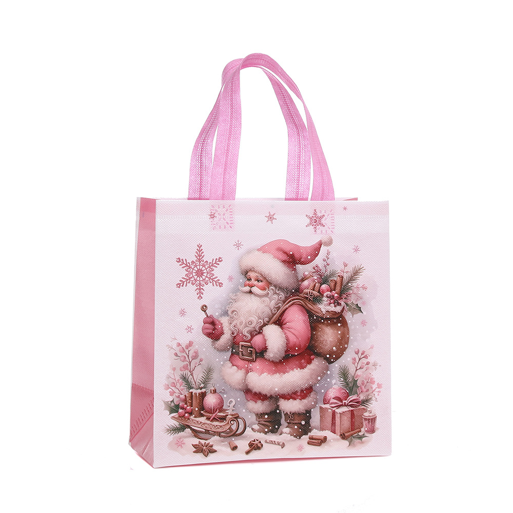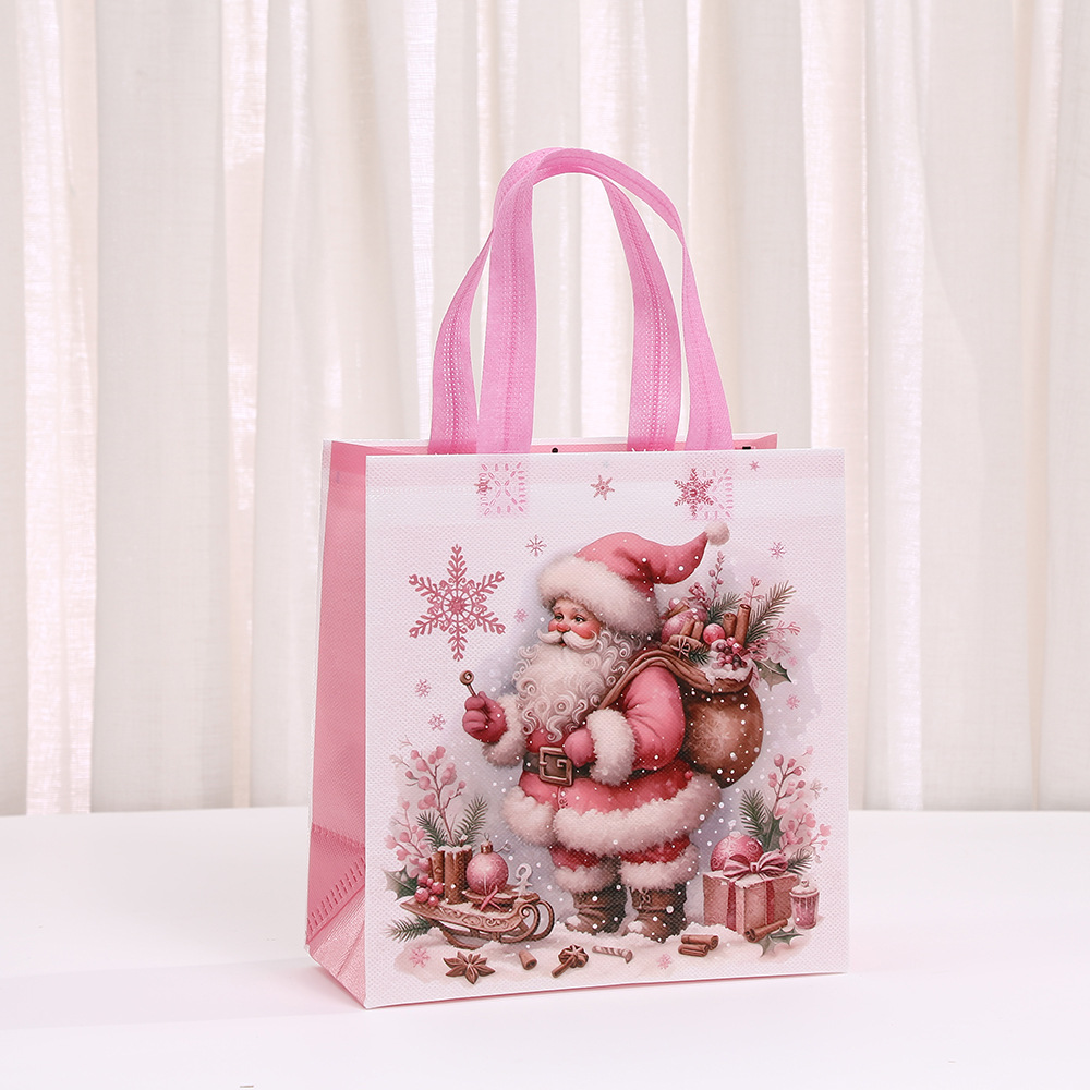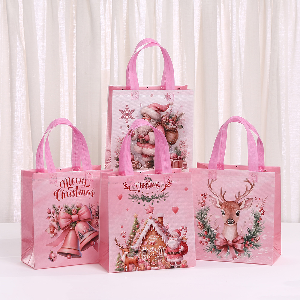 부직포 크리스마스 인쇄 핑크 휴대용 선물 가방 휴일 선물 포장 가방 쇼핑백 도매스토어 가기
