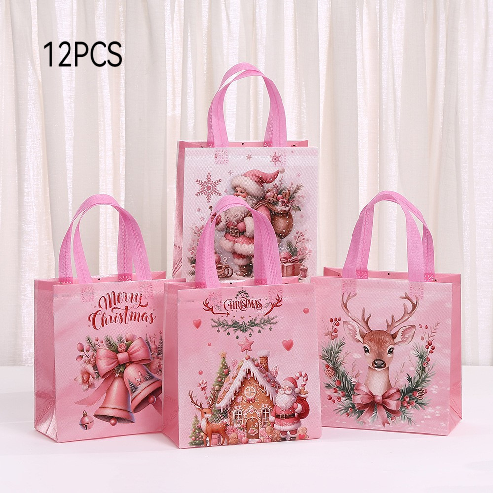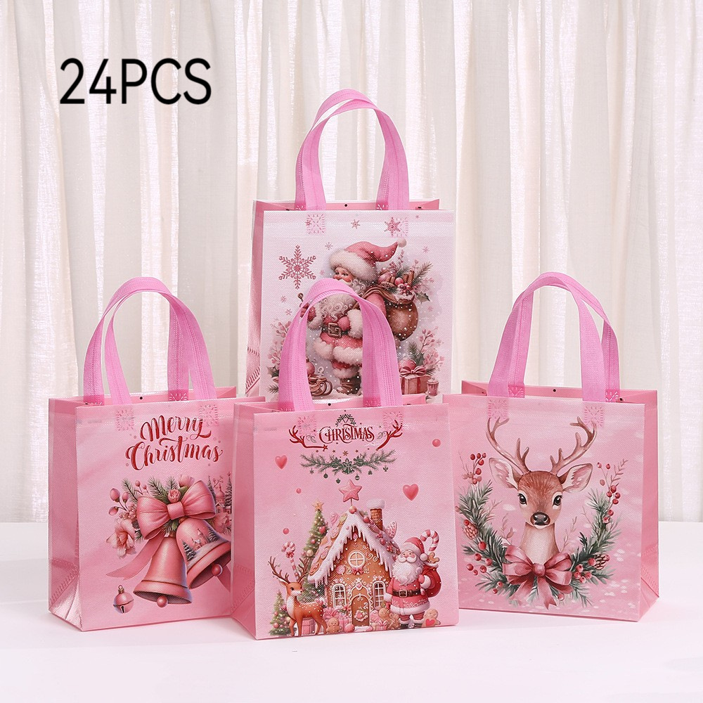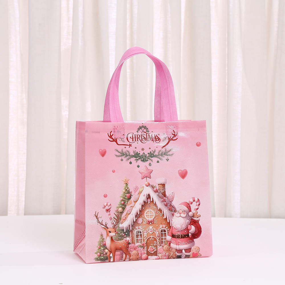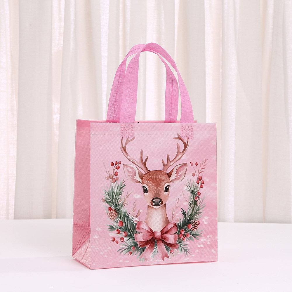 부직포 크리스마스 인쇄 핑크 휴대용 선물 가방 휴일 선물 포장 가방 쇼핑백 도매스토어 가기