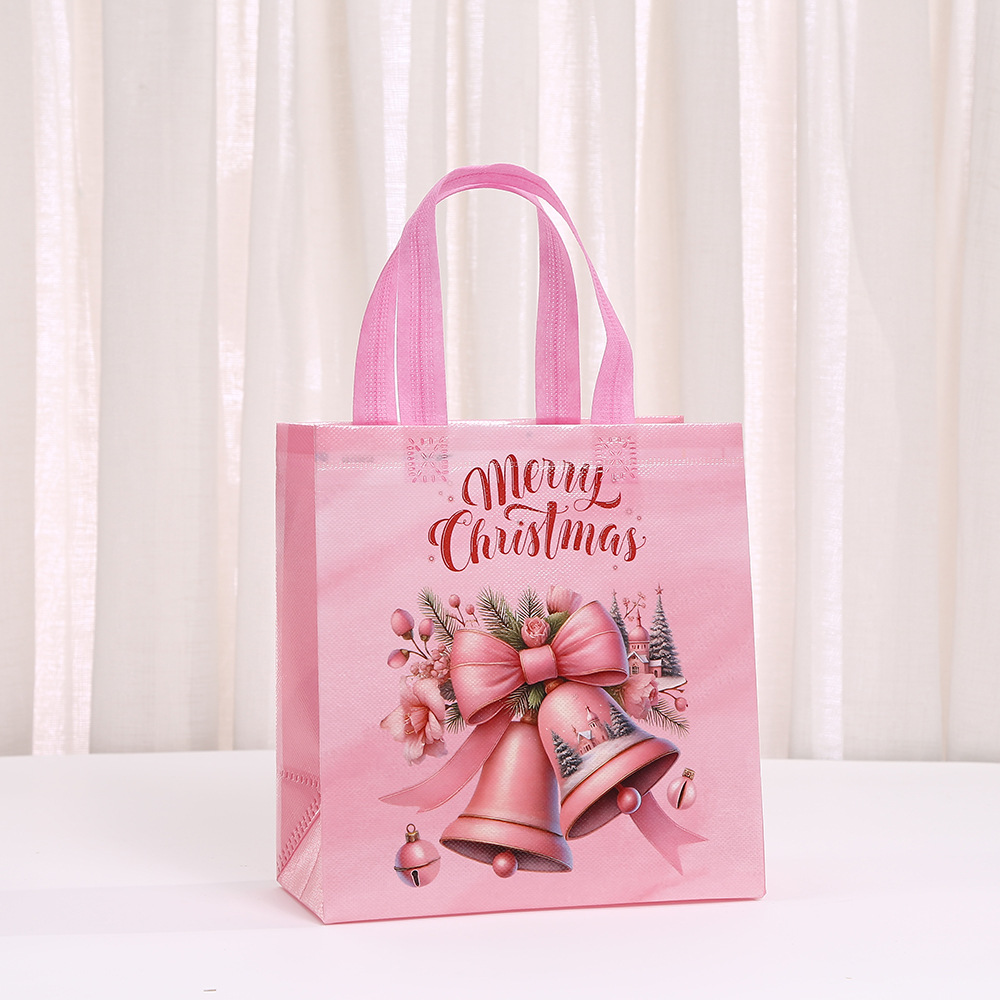 부직포 크리스마스 인쇄 핑크 휴대용 선물 가방 휴일 선물 포장 가방 쇼핑백 도매