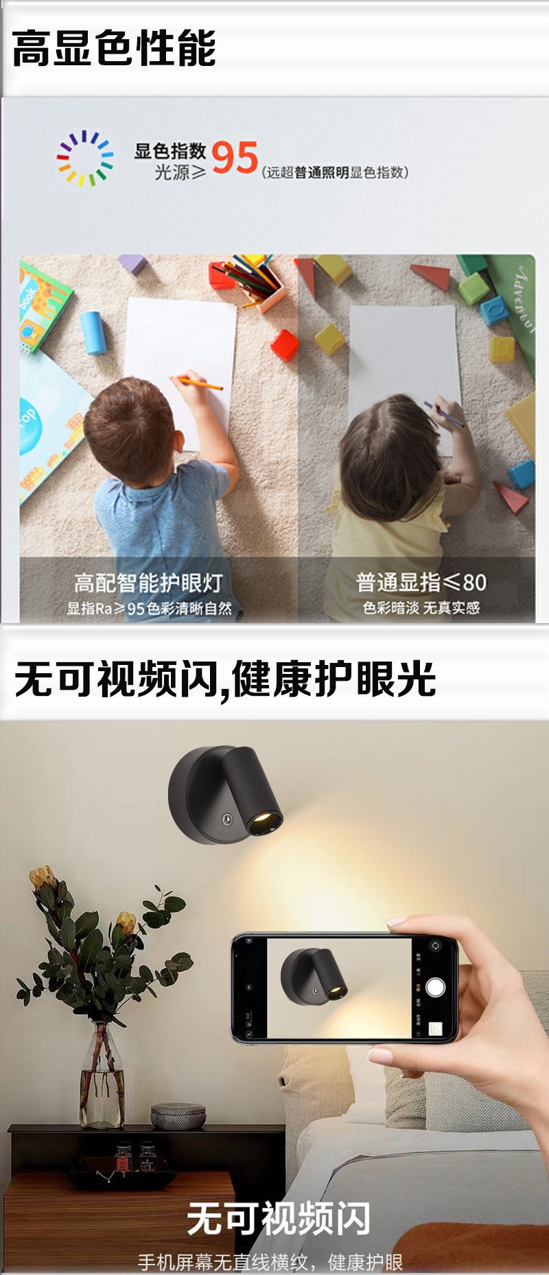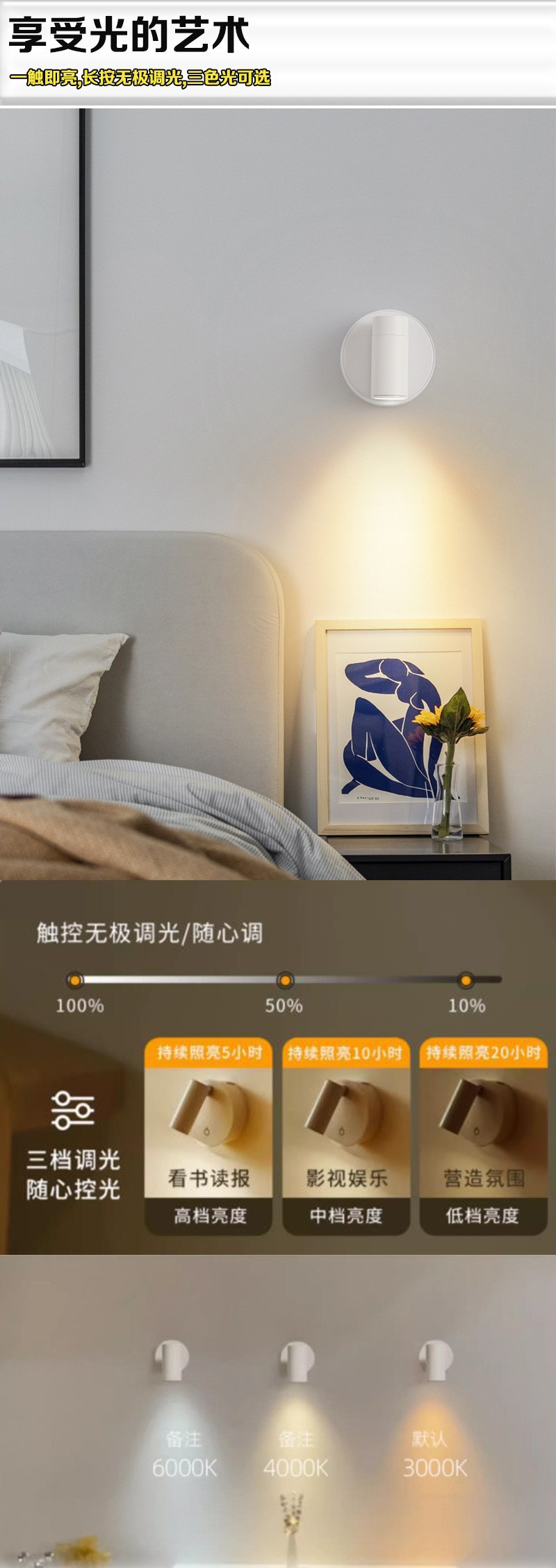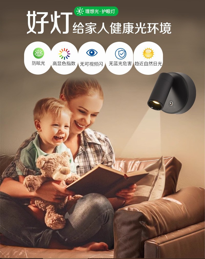 Led 벽 램프 자기 흡입 COB 스포트라이트 배선이 필요없는 충전식 벽 램프 usb 통 연구 침실 전면 장식 벽 램프