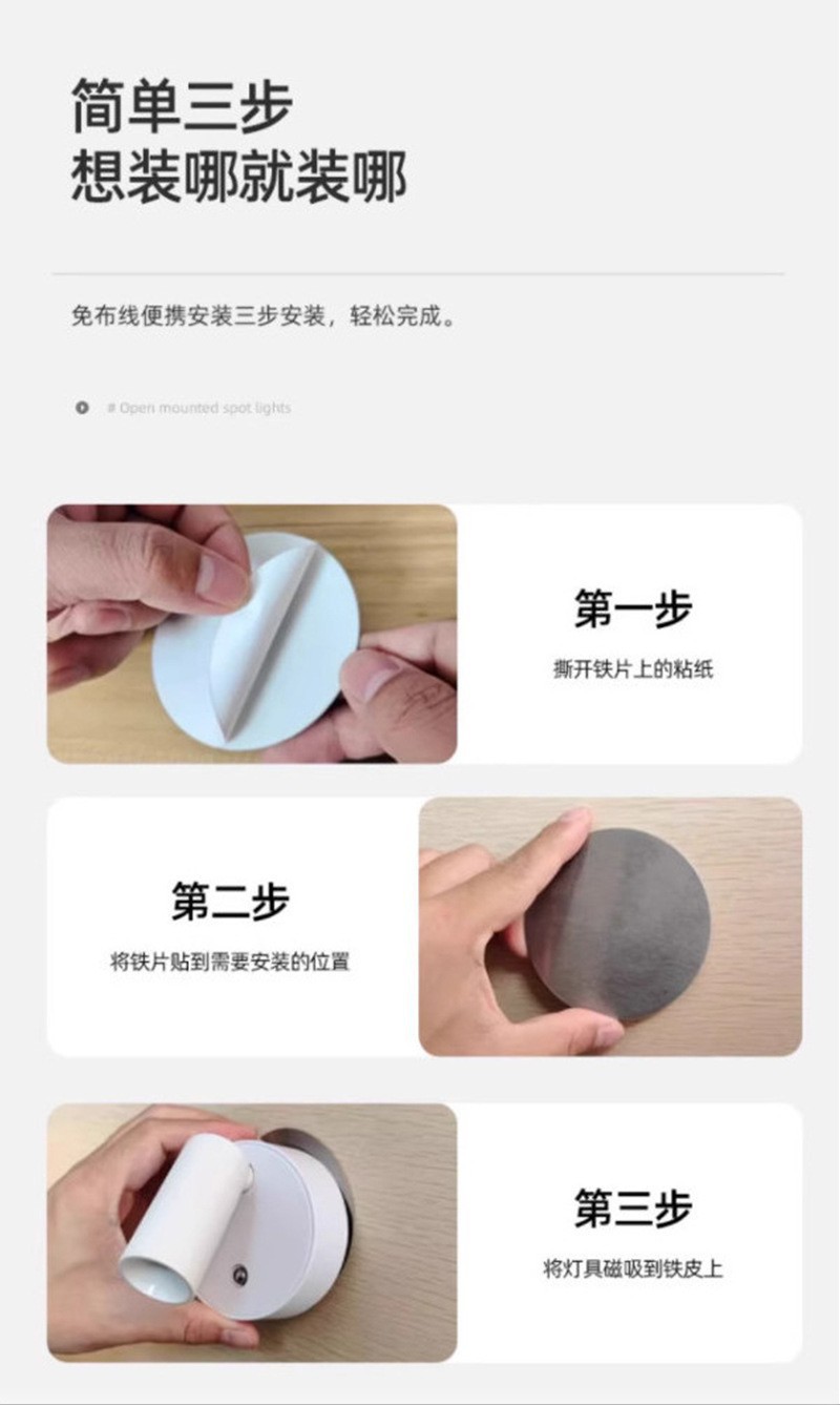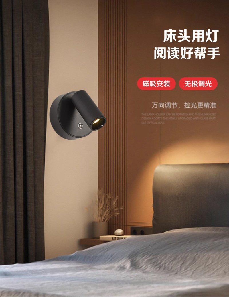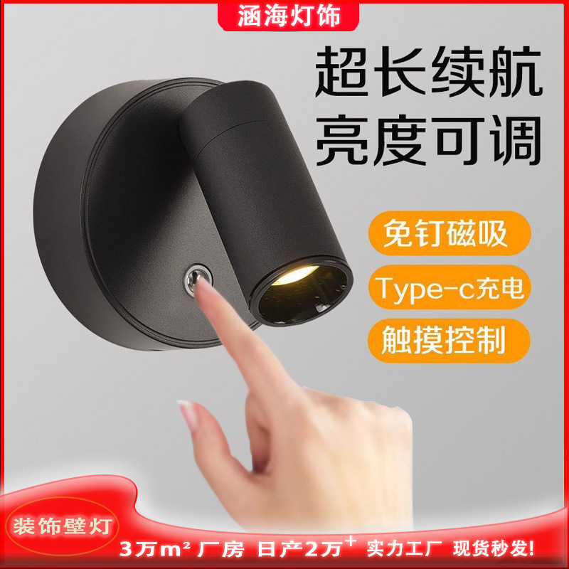 Led 벽 램프 자기 흡입 COB 스포트라이트 배선이 필요없는 충전식 벽 램프 usb 통 연구 침실 전면 장식 벽 램프스토어 가기