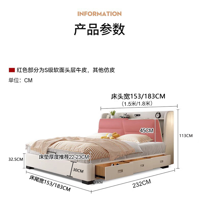 • 침대 + 22cm 5성급 무소음 독립 포켓 스프링 매트리스 + 캐비닛 2개