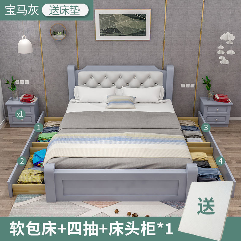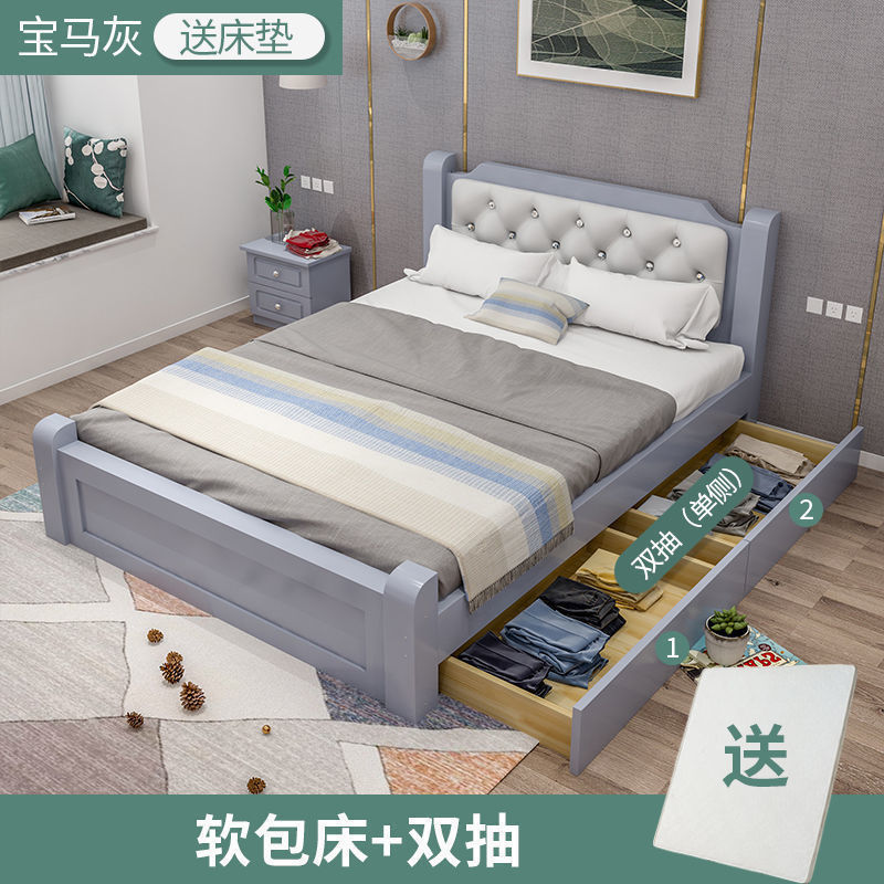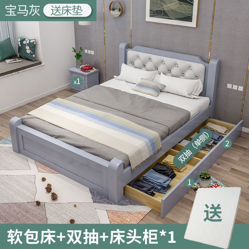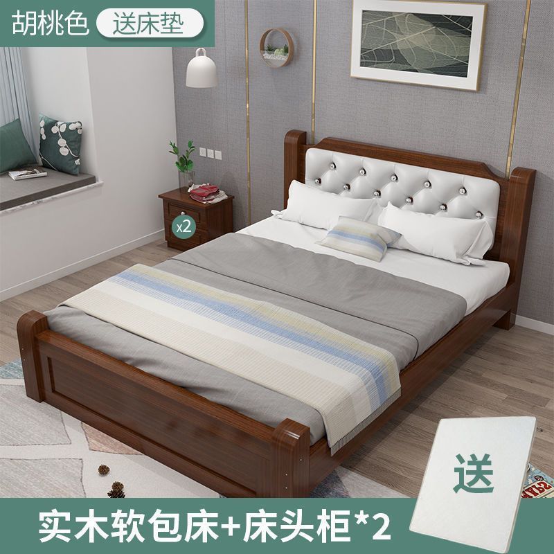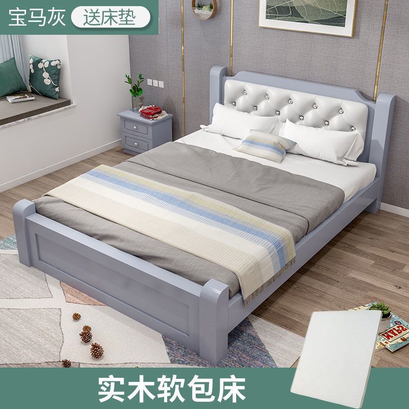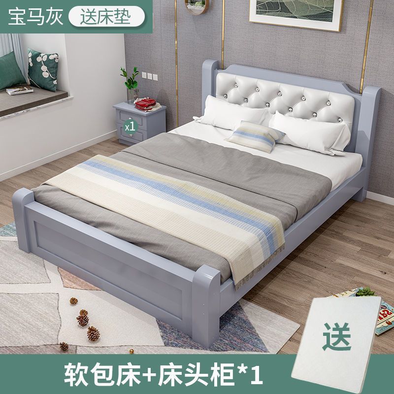 원목 침대 모던 심플 1.8m 더블 침대 1.5m 싱글 침대 1.2m 홈 침실 1m 임대 침대 프레임