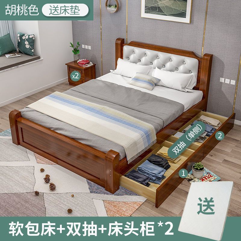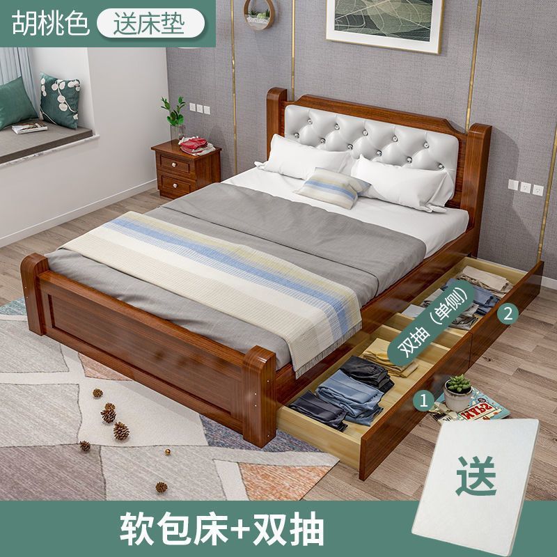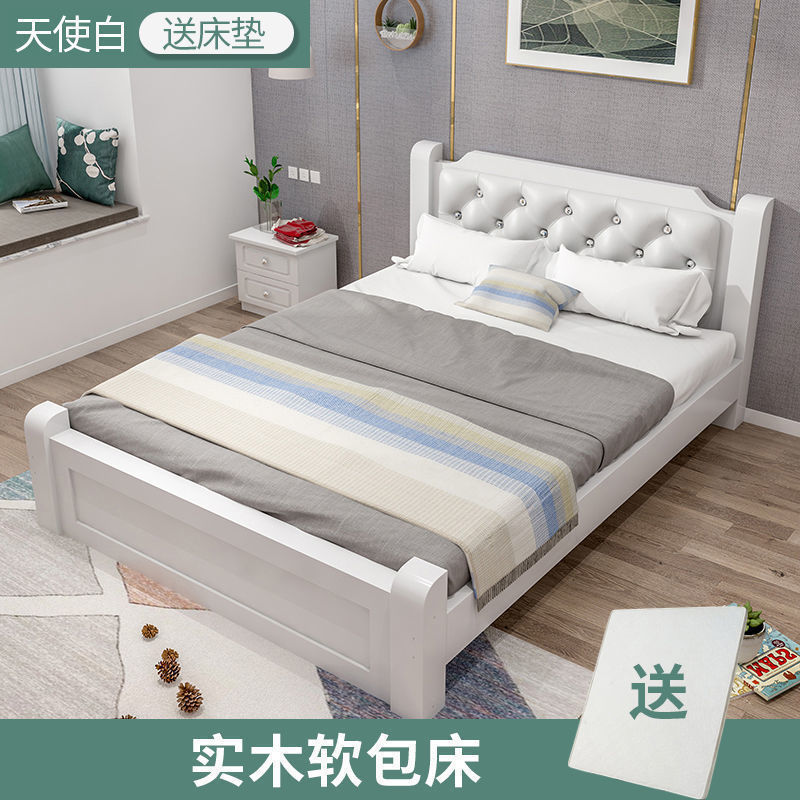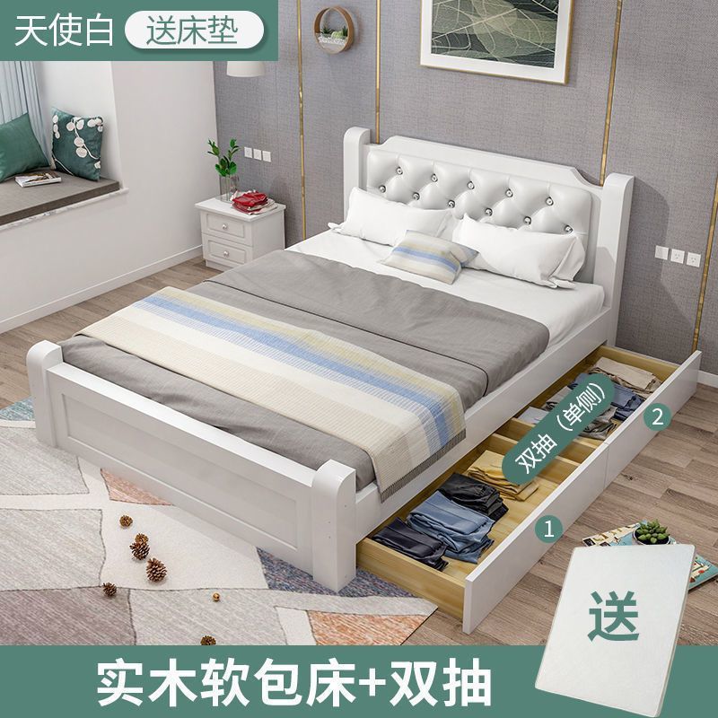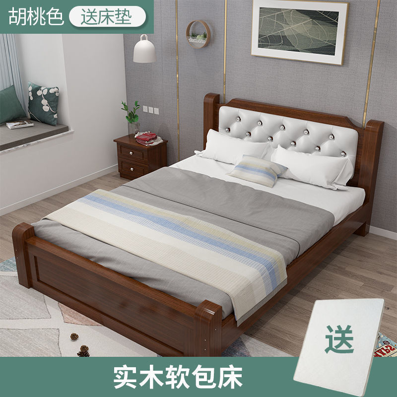 원목 침대 모던 심플 1.8m 더블 침대 1.5m 싱글 침대 1.2m 홈 침실 1m 임대 침대 프레임스토어 가기