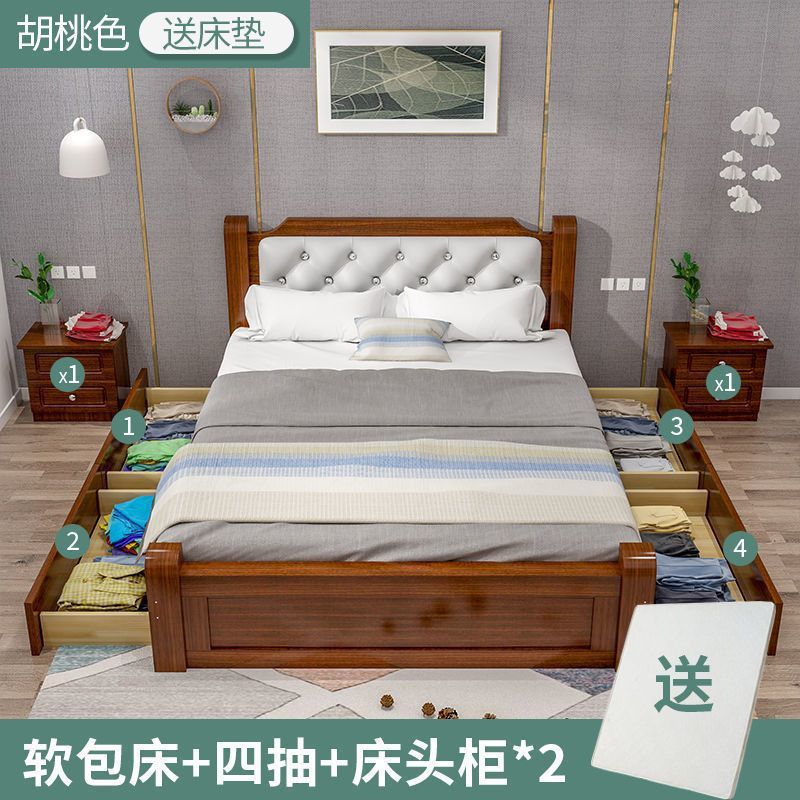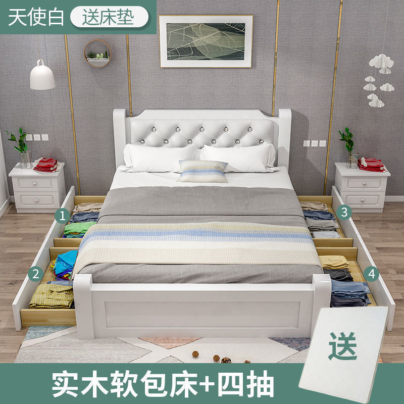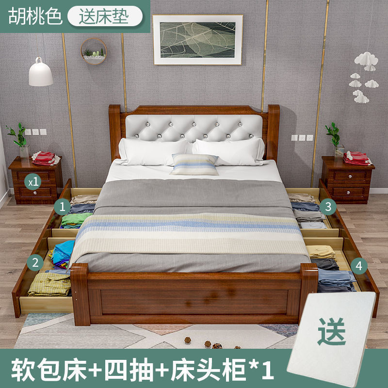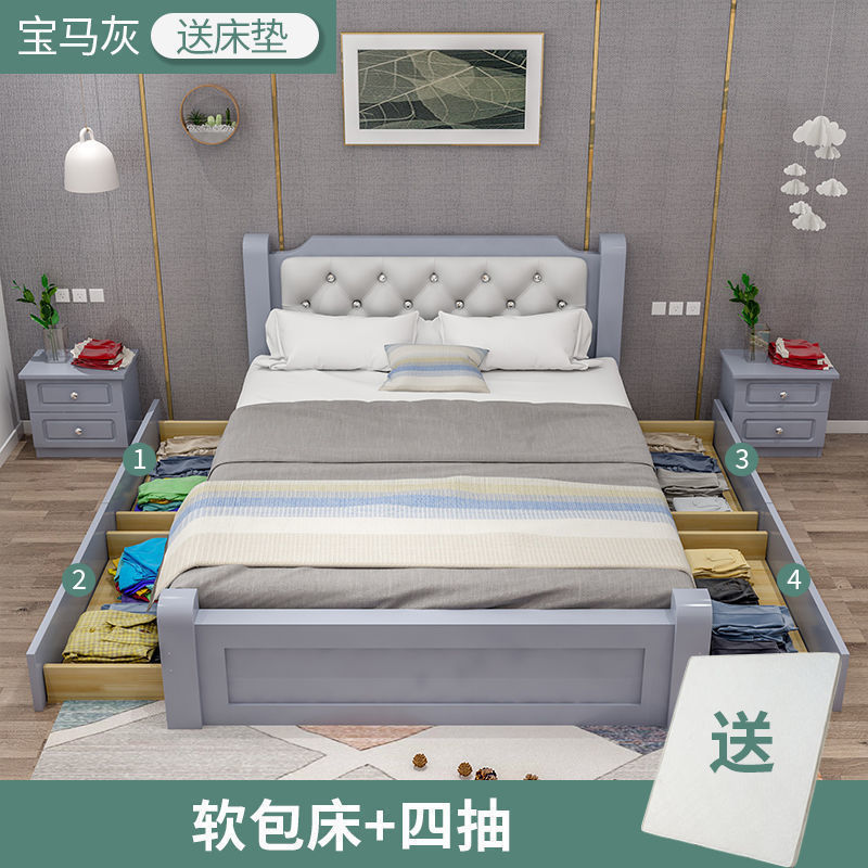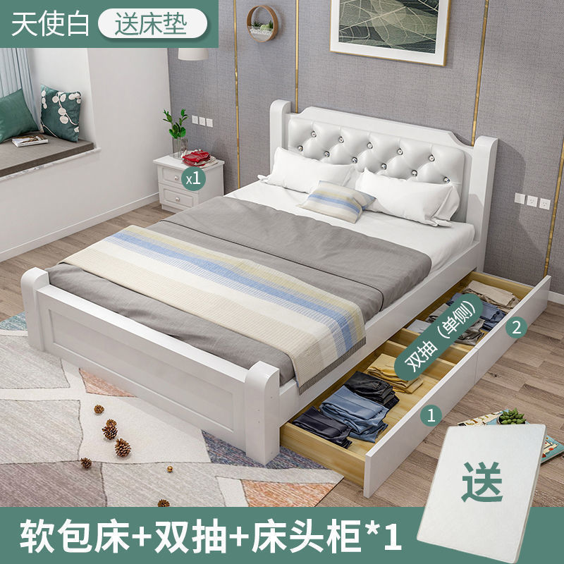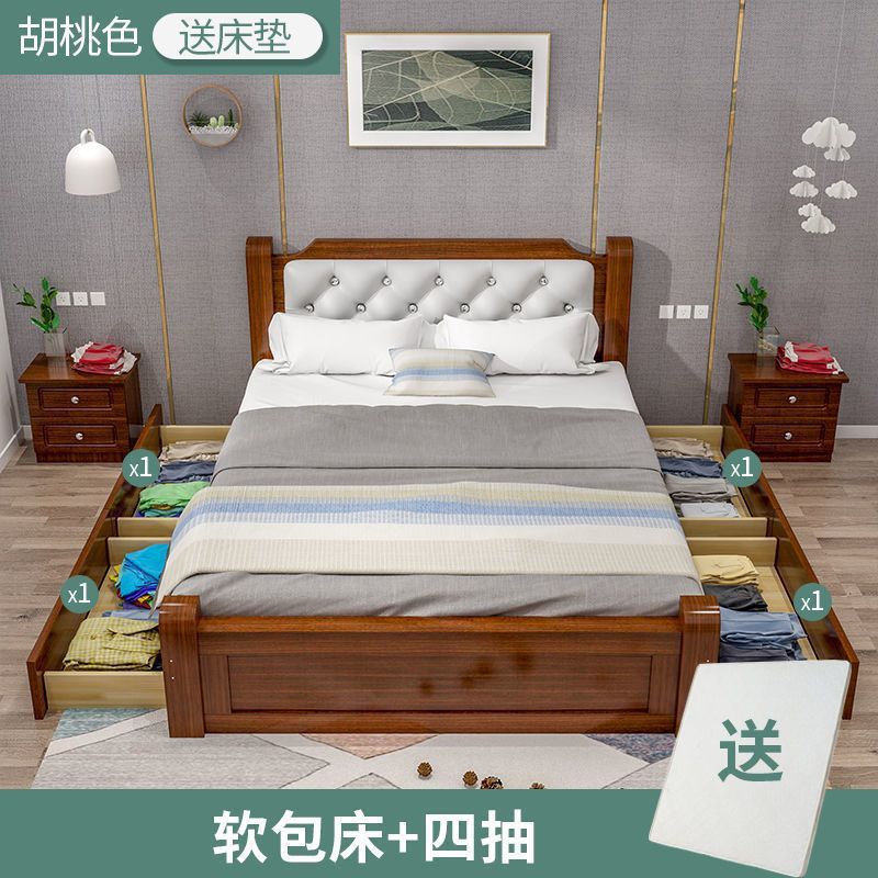 원목 침대 모던 심플 1.8m 더블 침대 1.5m 싱글 침대 1.2m 홈 침실 1m 임대 침대 프레임스토어 가기