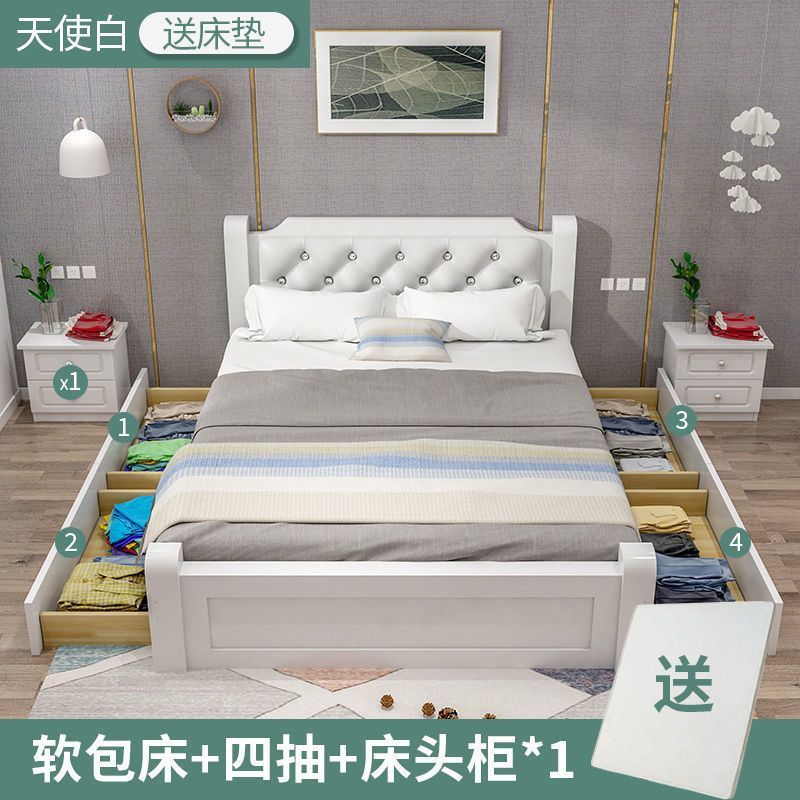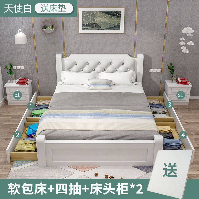 • 엔젤화이트 원목침대】+쿠션+서랍4개+수납장*1+입구
